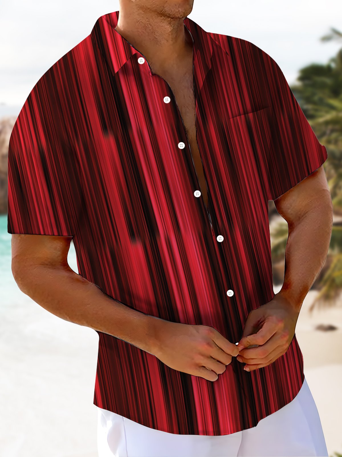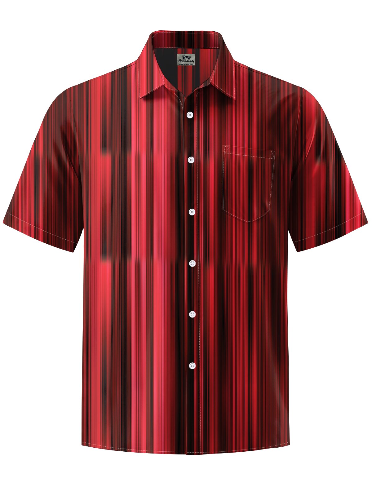 Alohadaddy® Casual Stripe Art Print Chest Pocket Men's Short Sleeve Shirt Big & Tall