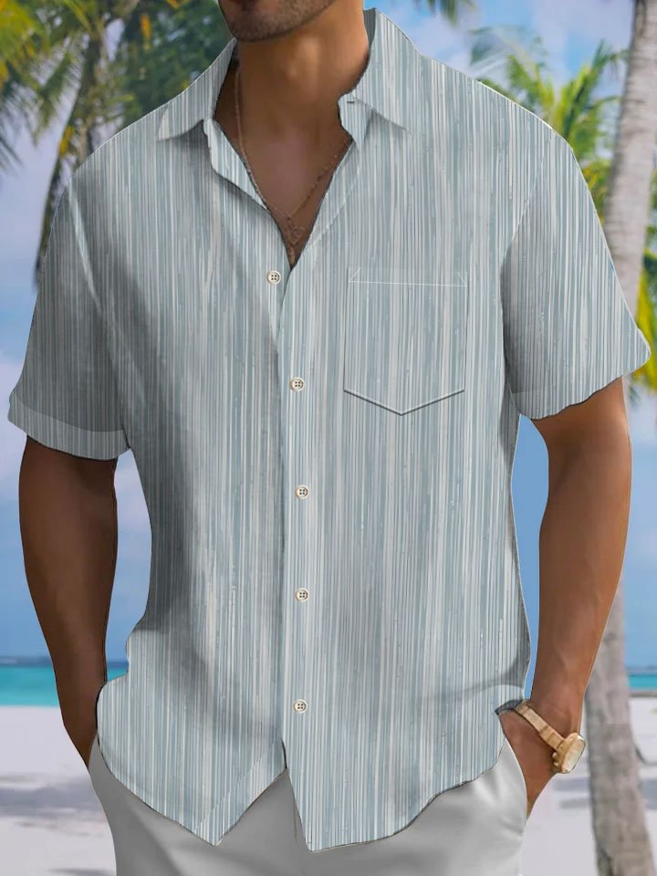 Alohadaddy® Casual Stripe Art Print Chest Pocket Mens Short Sleeve Shirt Big & Tall