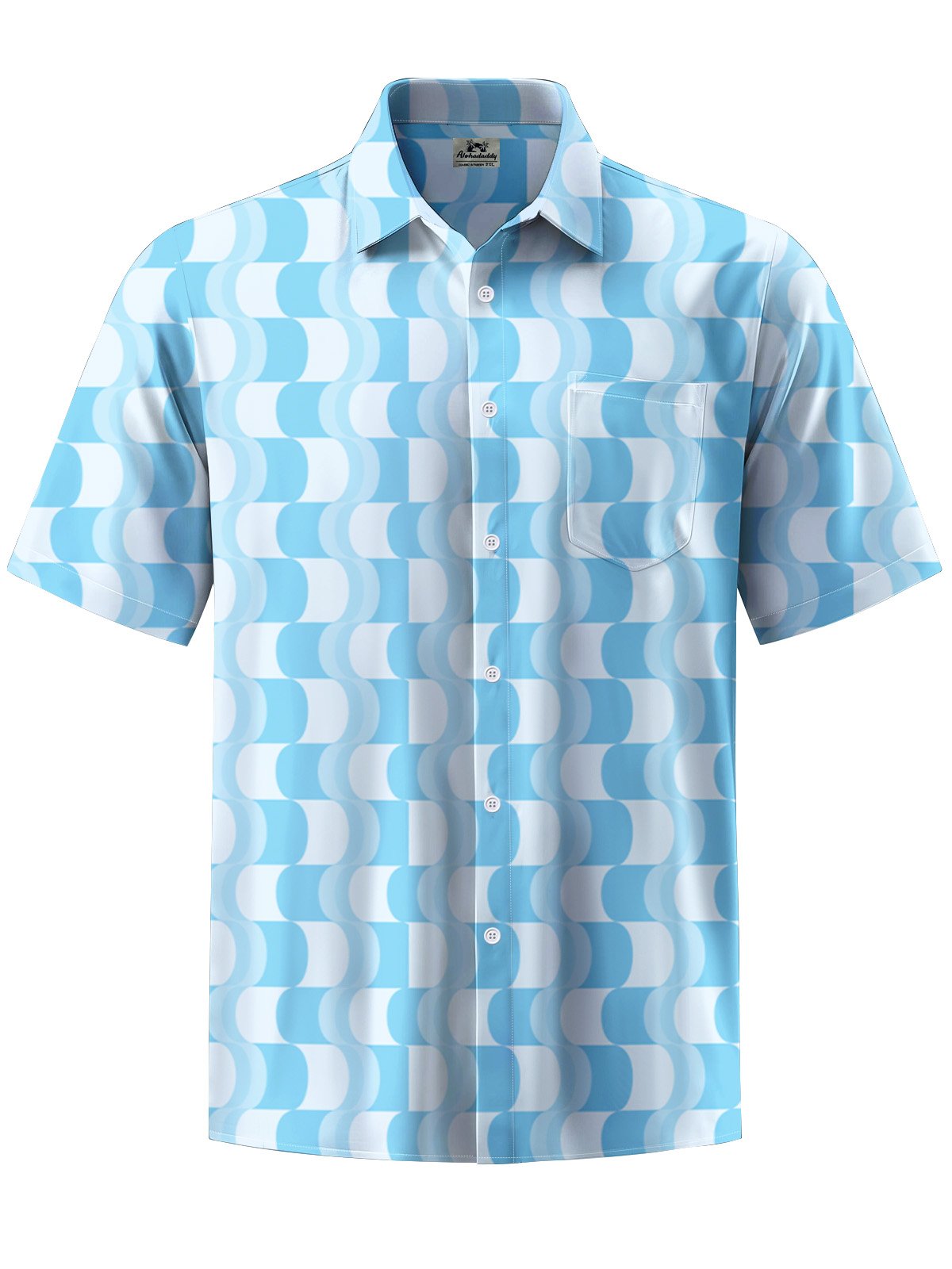 Alohadaddy® Casual Stripe Art Print Chest Pocket Men's Short Sleeve Shirt Big & Tall