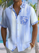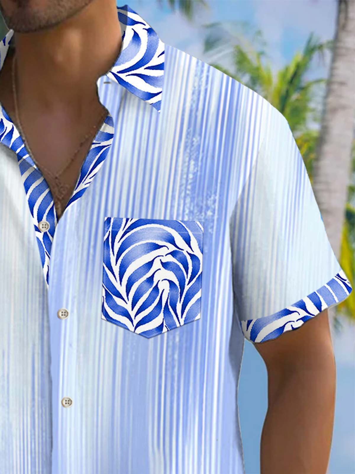 Alohadaddy® Casual Striped Contrast Leaf Art Print Chest Pocket Men's Short Sleeve Shirt Big & Tall