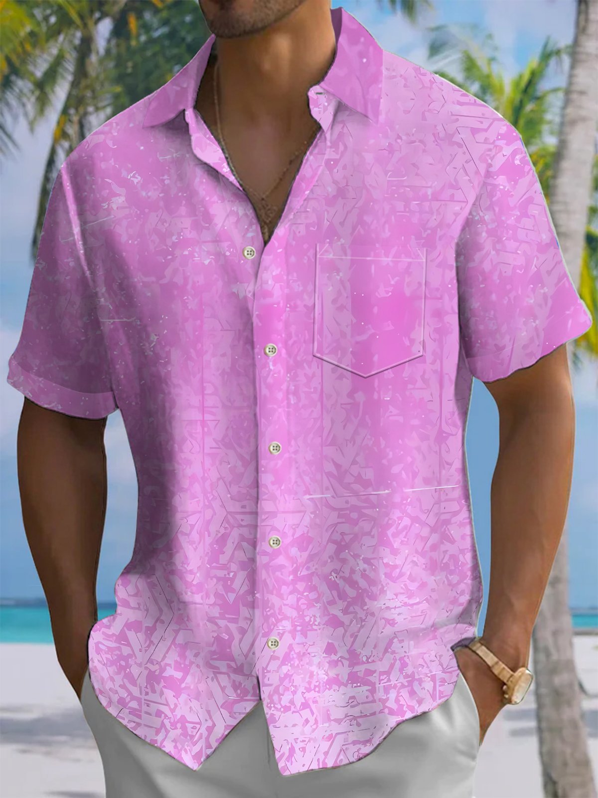 Alohadaddy® Hawaiian Abstract Gradient Art Print Chest Pocket Mens Short Sleeve Shirts Big & Tall