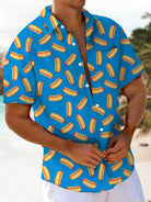 Alohadaddy® Hawaiian Hot Dog Art Print Chest Pocket Men's Stretch Short Sleeve Shirt Big & Tall