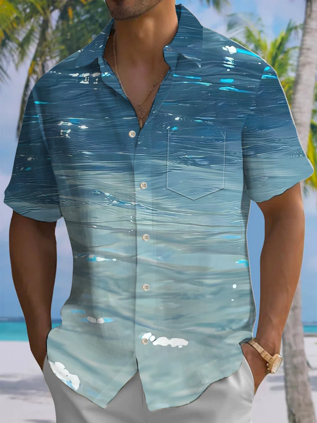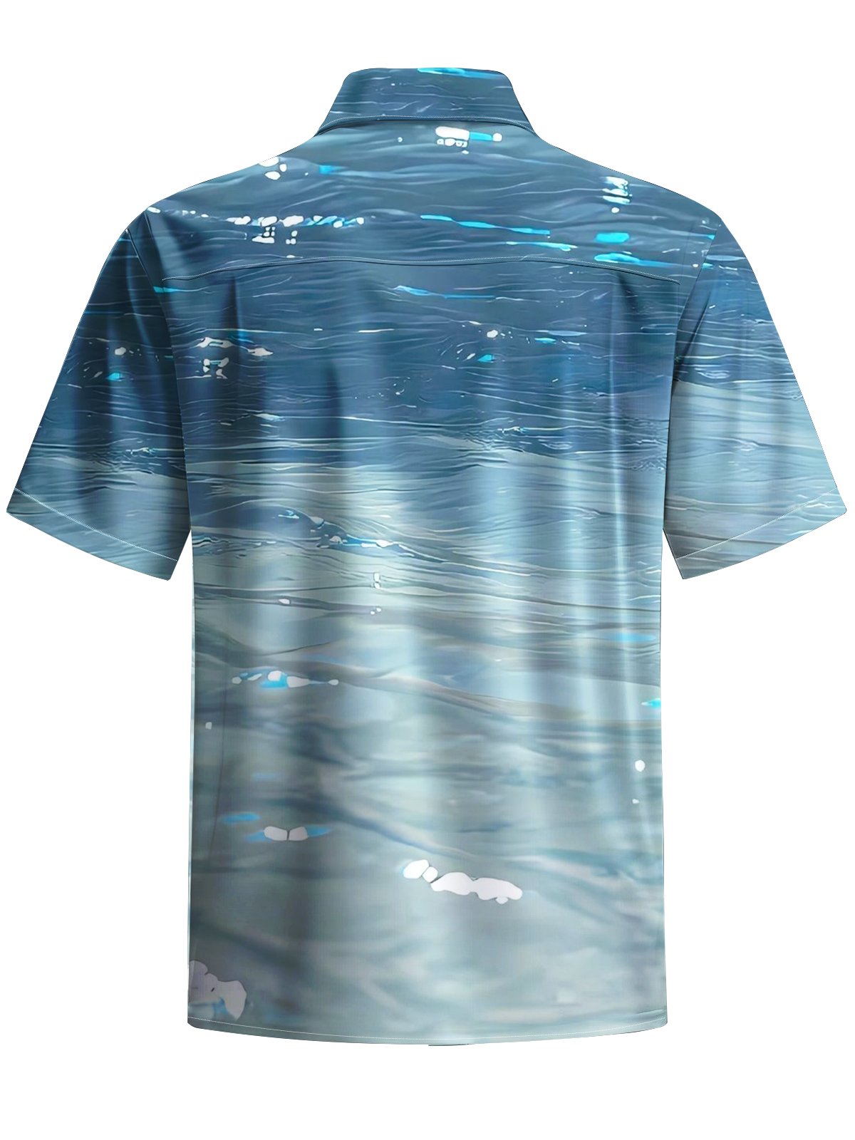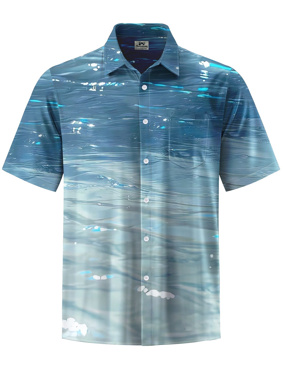 Alohadaddy® Hawaiian Seawater Art Print Men's Moisture Wicking Short Sleeve Shirt Big & Tall
