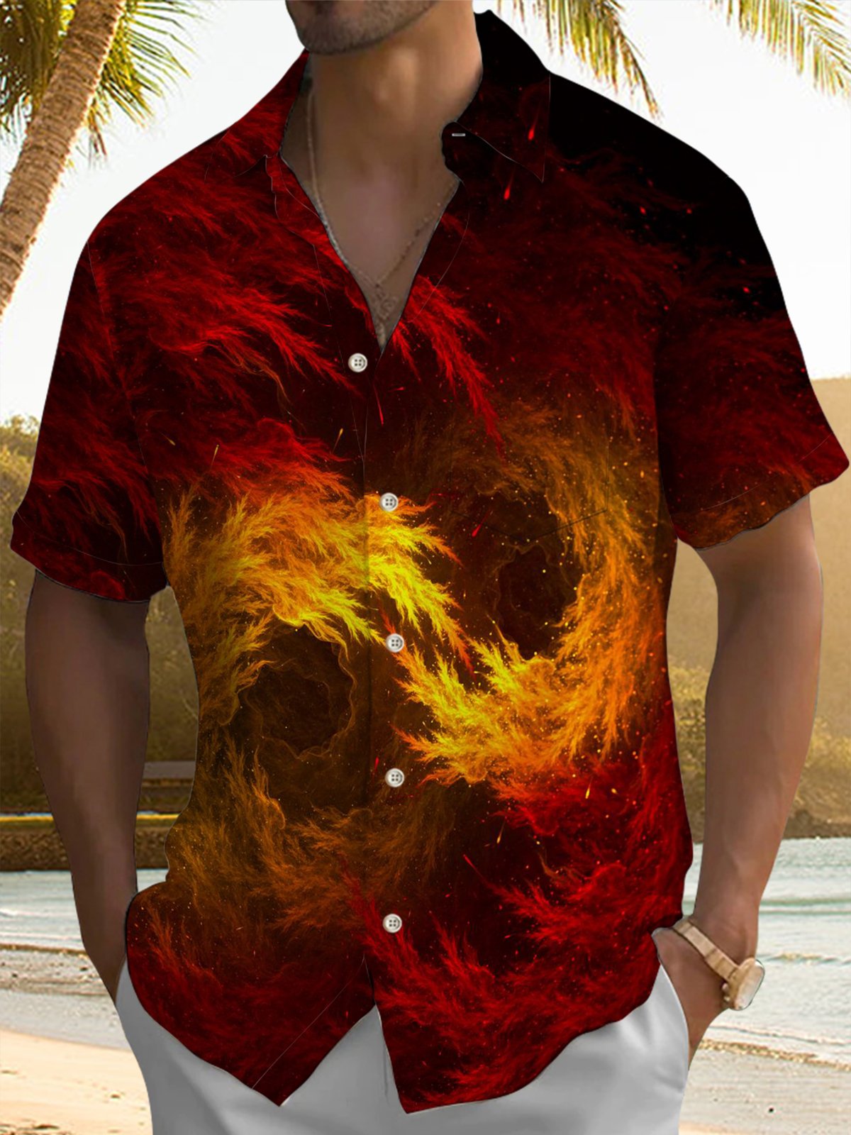 Alohadaddy® Retro Abstract Art Print Pocket Stretch Men's Short Sleeve Shirt Big & Tall