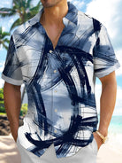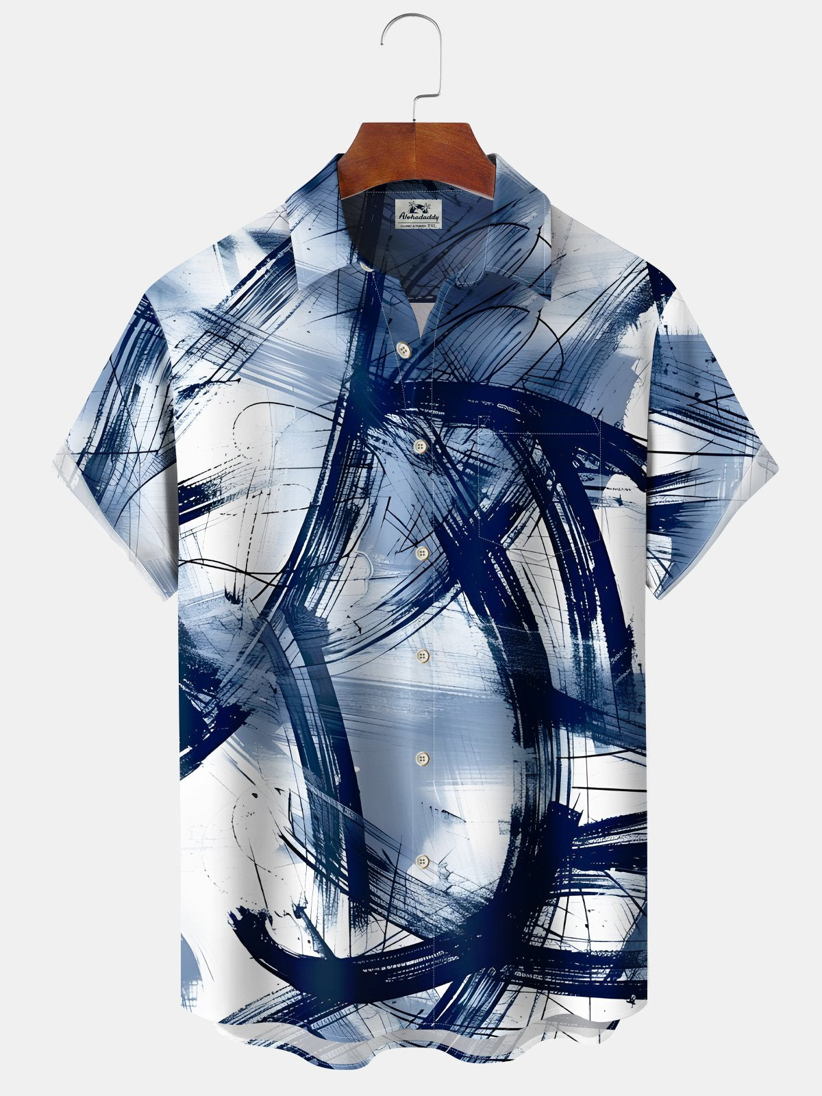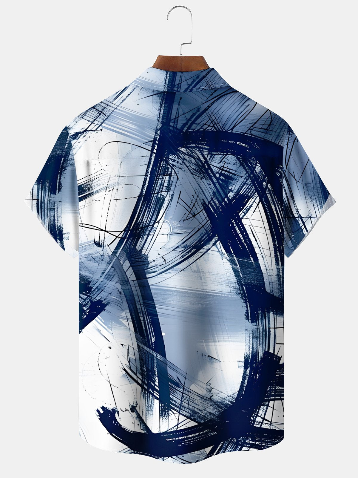 Alohadaddy® Retro Abstract Geometric Art Gradient Men's Short Sleeve Pocket Shirt
