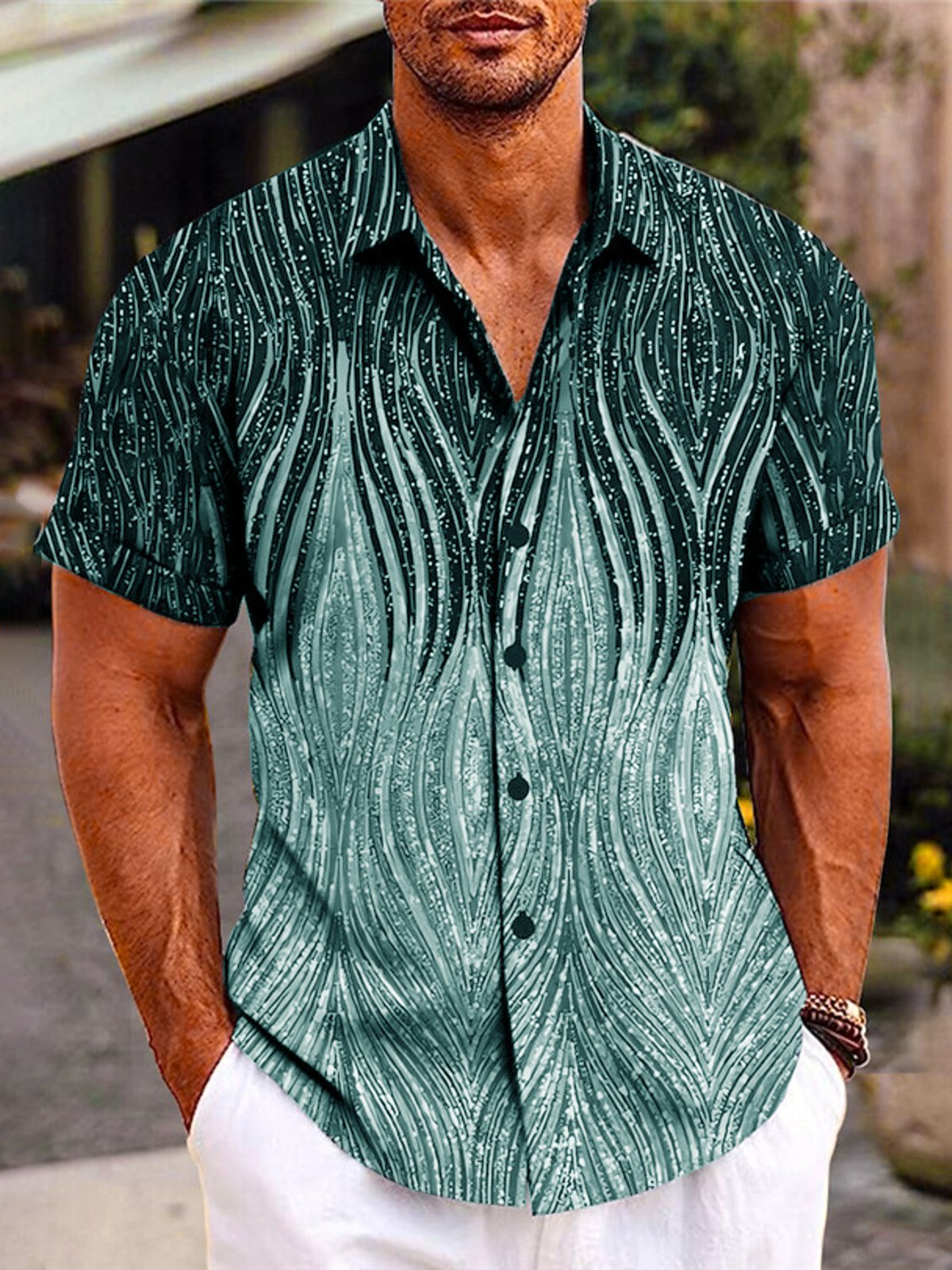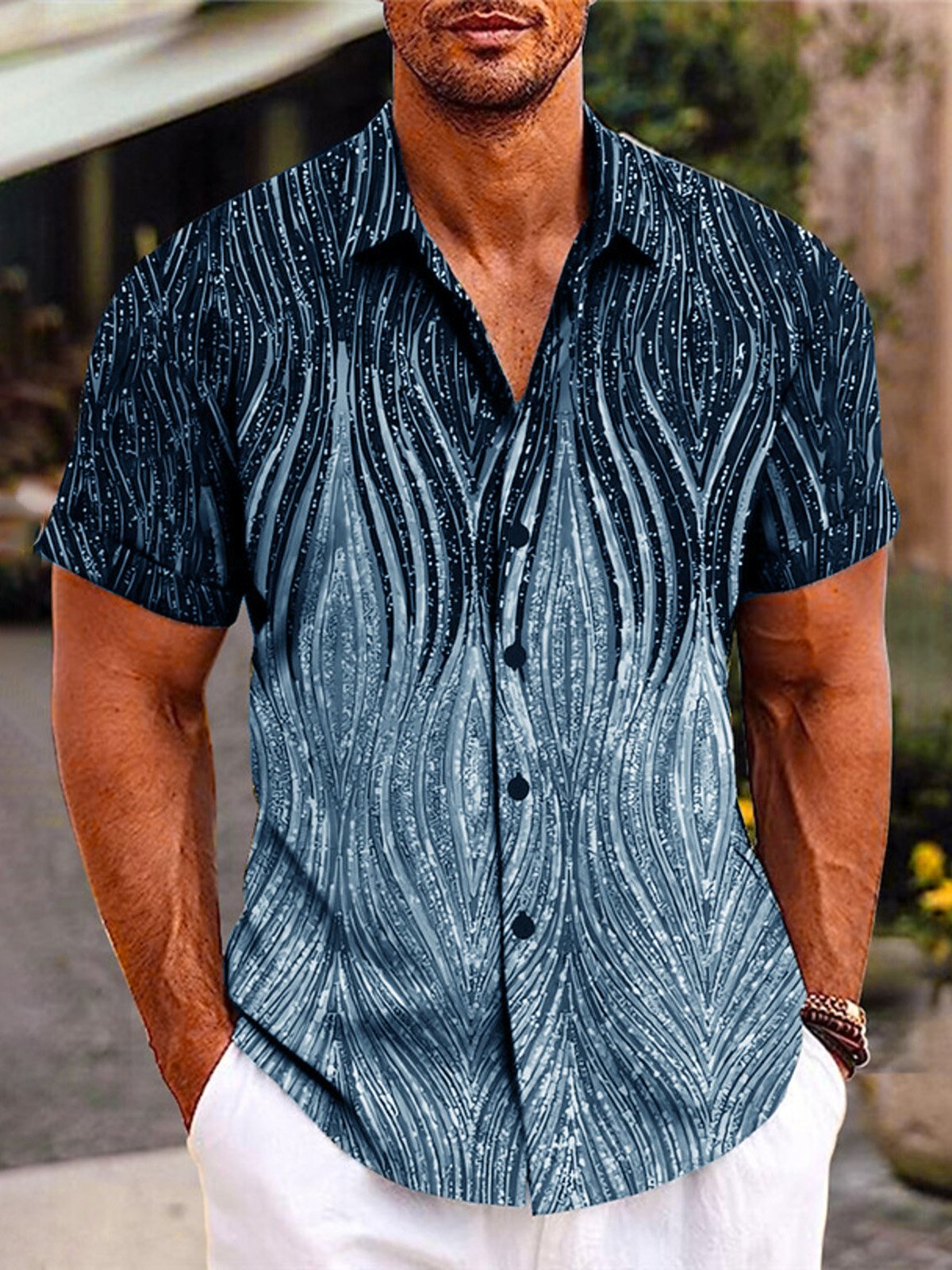 Alohadaddy 50's Retro Medieval Geometric Men's Camp Shirt Quick-drying Stretch Dark Gray Gradient Art Shirt Big Tall