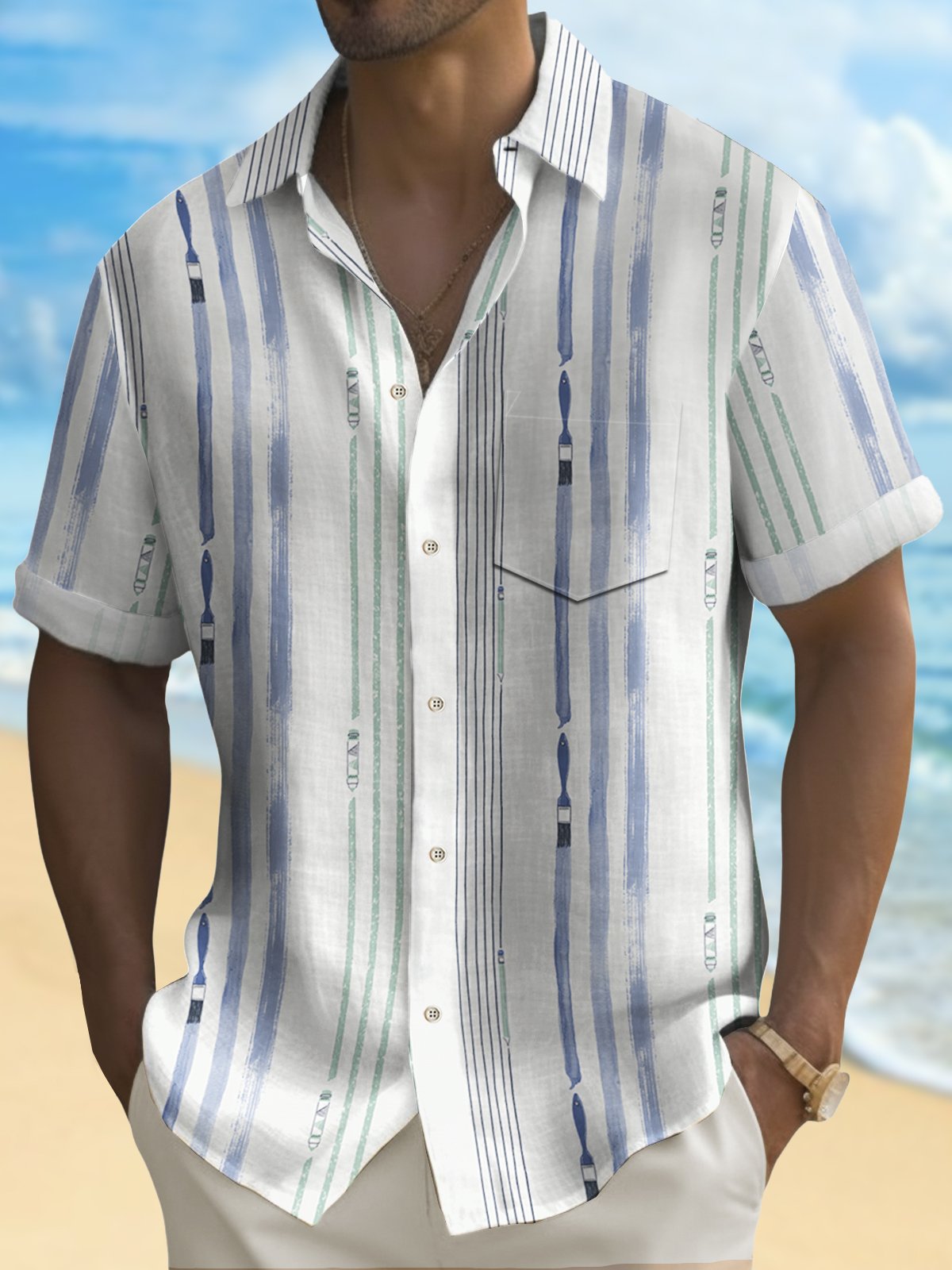 Alohadaddy Basic Stripe Art Men's Hawaiian Shirt Easy Care Pocket Camp Shirt