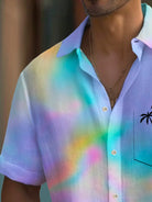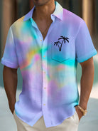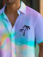Alohadaddy Beach Vacation Men's Hawaiian Shirt Gradient Texture Coconut Tree Print Pocket Camping Shirt Big Tall