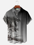 Alohadaddy Botanical Retro Gradient 3D Digital Print Men's Button Pocket Short Sleeve Shirt Big & Tall