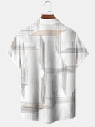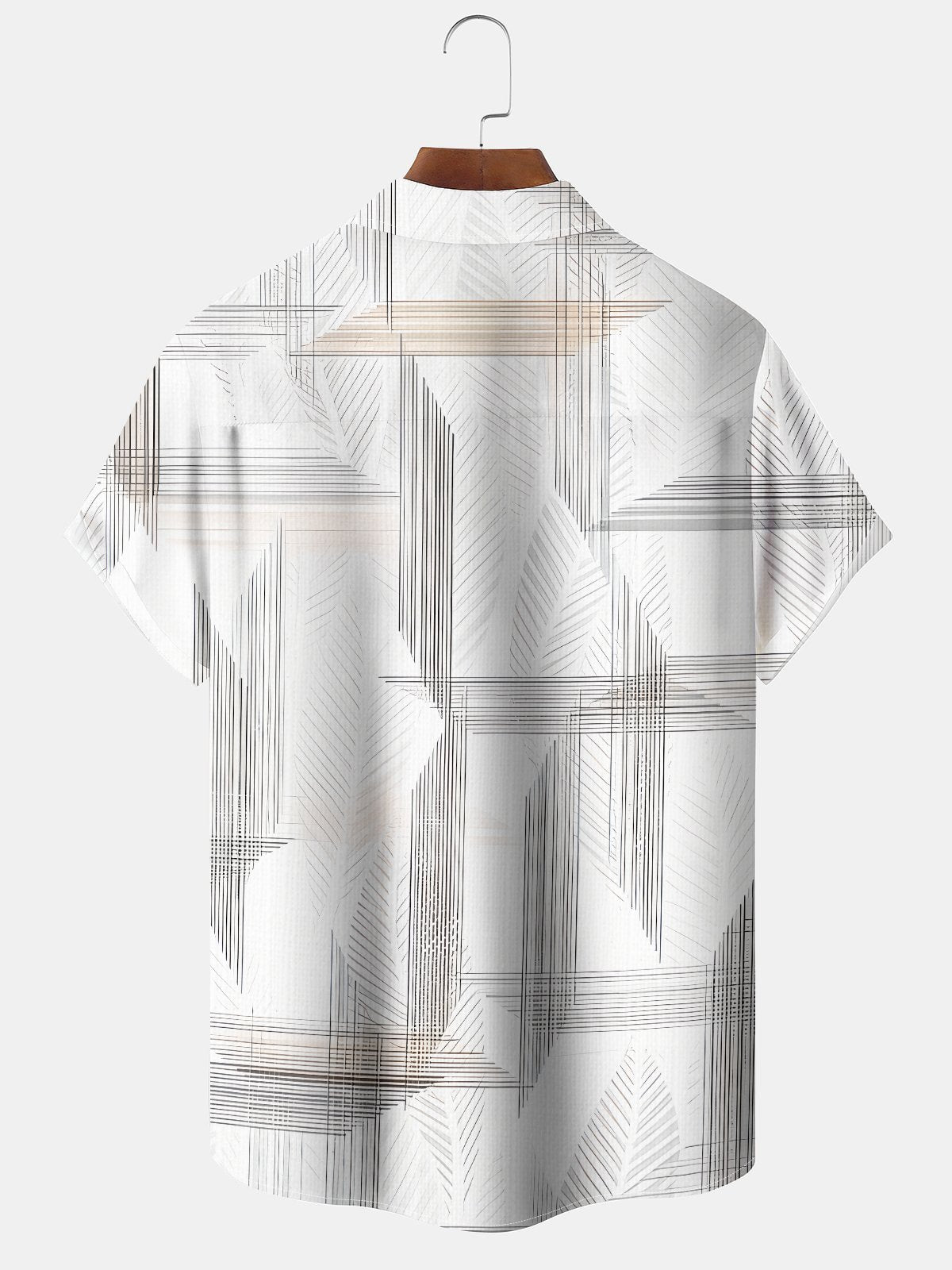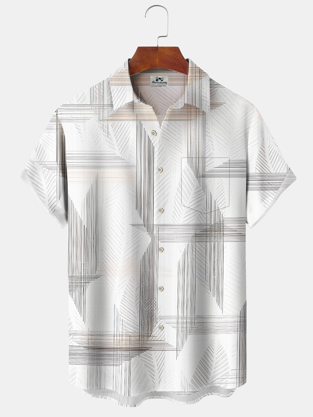 Alohadaddy Casual Collection Hawaiian Vacation Stripes Leaves Print Art Buttons Cardigan Pockets Fresh Stretch Polyester Short Sleeve Shirt