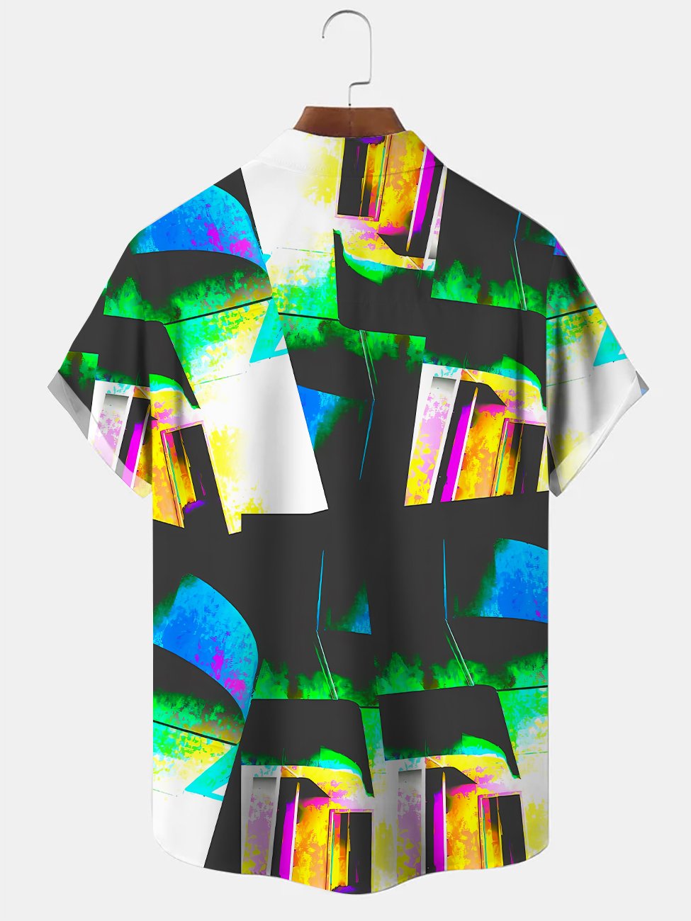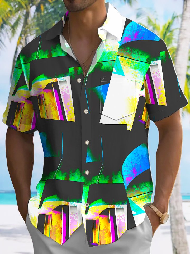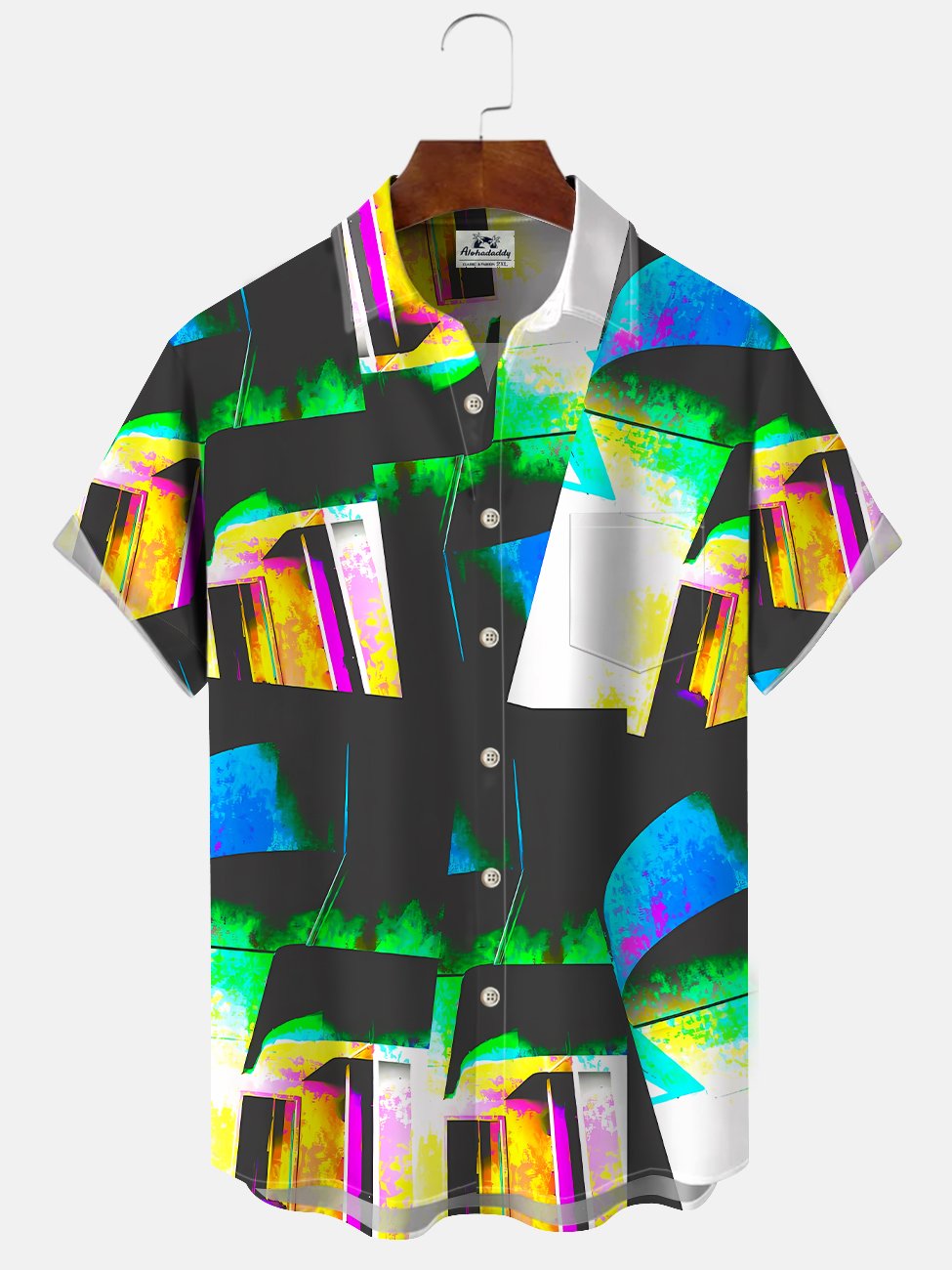 Alohadaddy Geometric Button Pocket Casual Short Sleeve Shirt