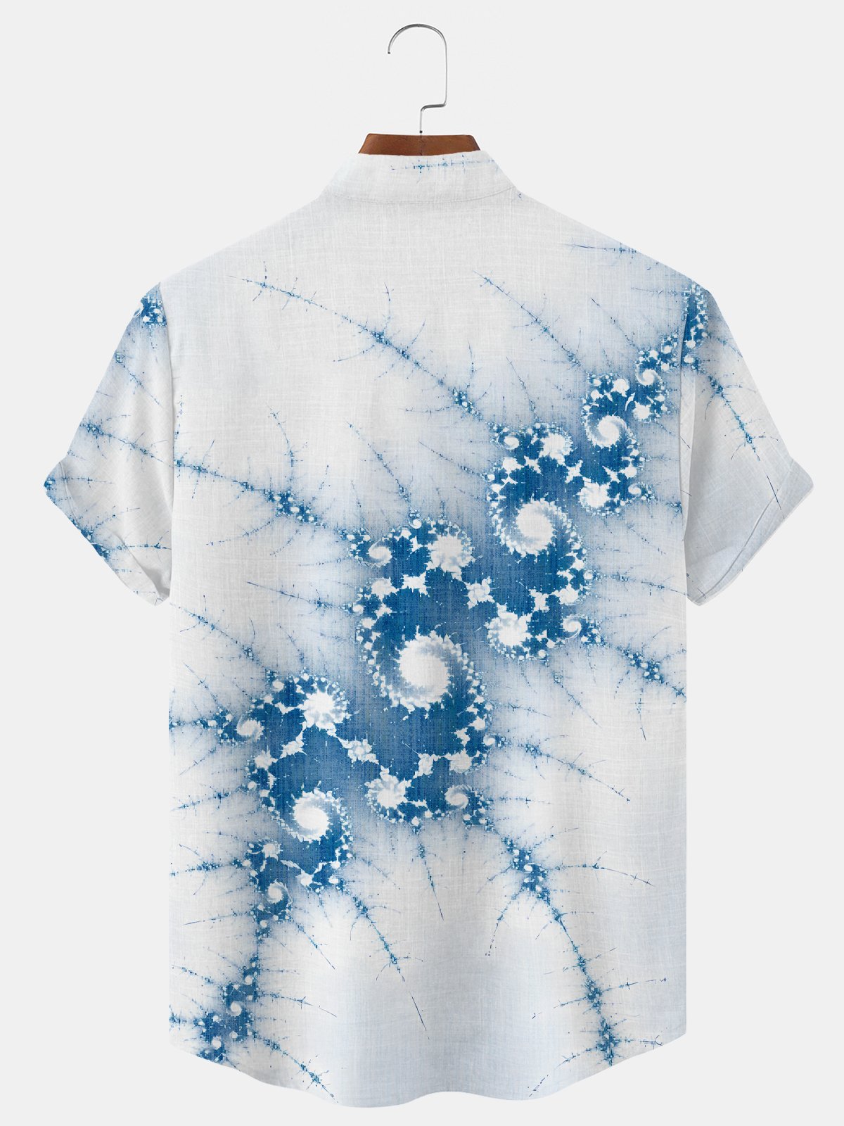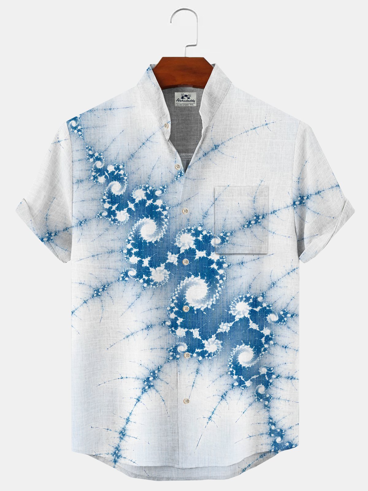 Alohadaddy Geometric Button Pocket Casual Short Sleeve Stand Collar Shirt