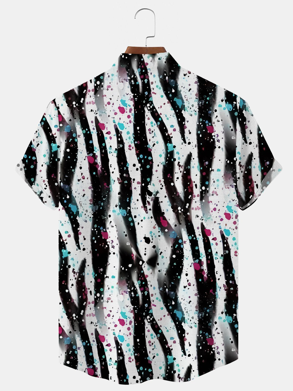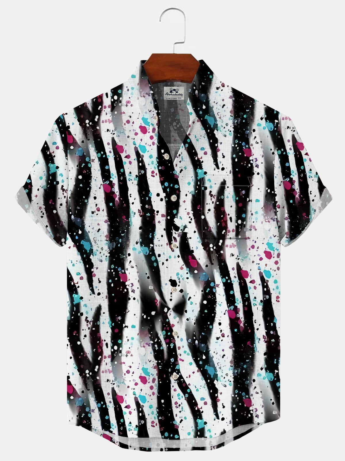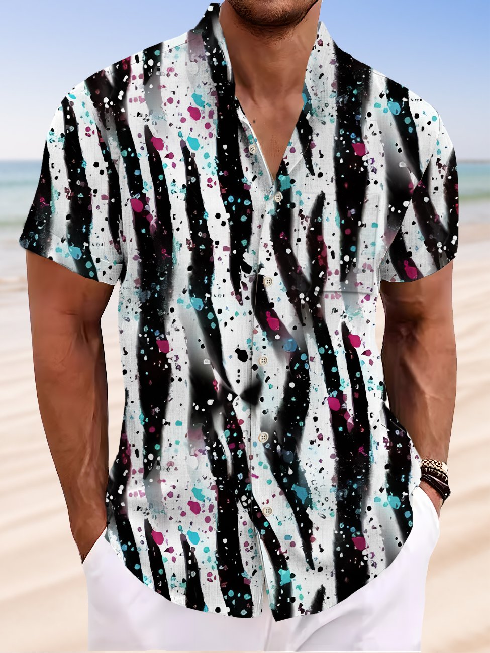 Alohadaddy Geometric Button Pocket Casual Short Sleeve Stand Collar Shirt