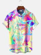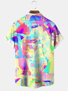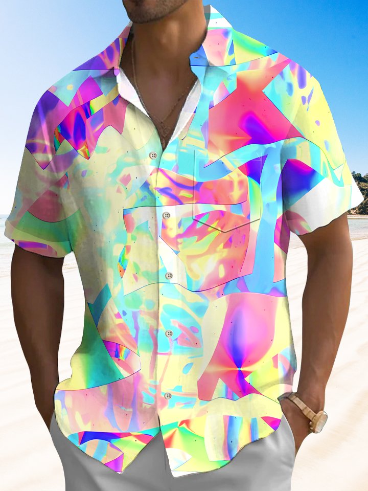 Alohadaddy Geometric Contrast Block Button Pocket Casual Short Sleeve Shirt