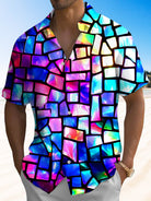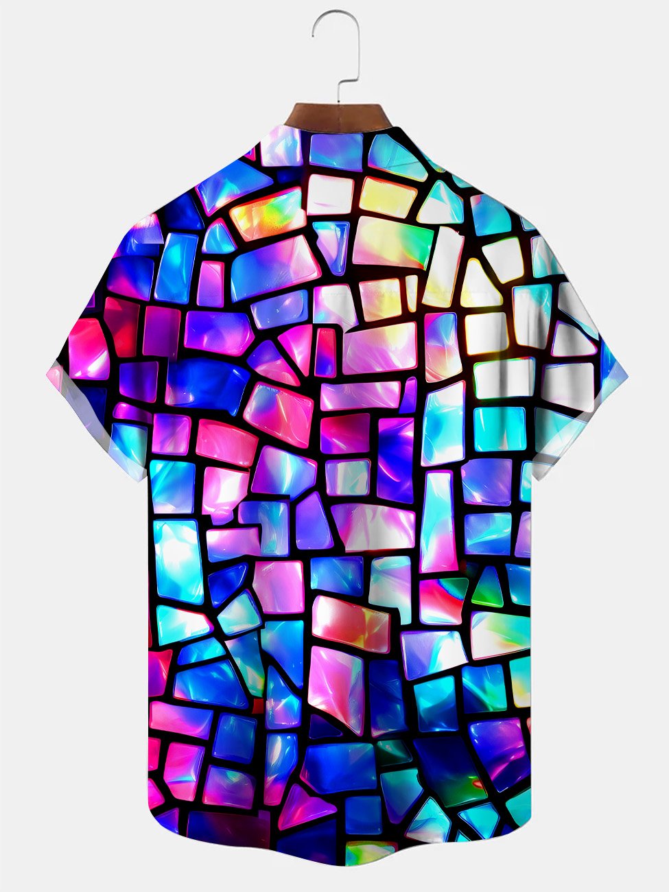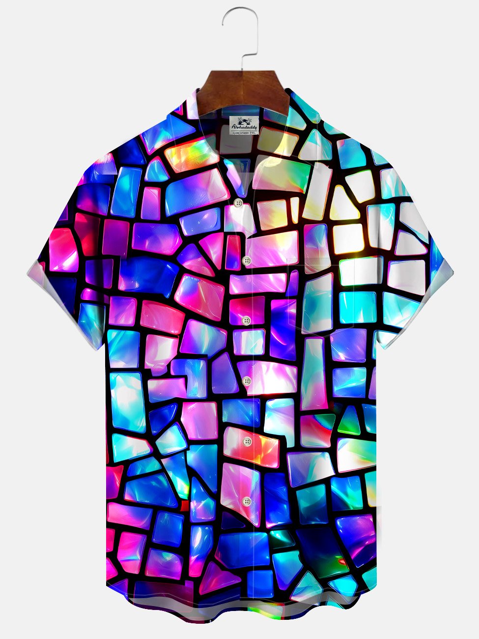 Alohadaddy Geometric Gradient Button Pocket Casual Short Sleeve Shirt