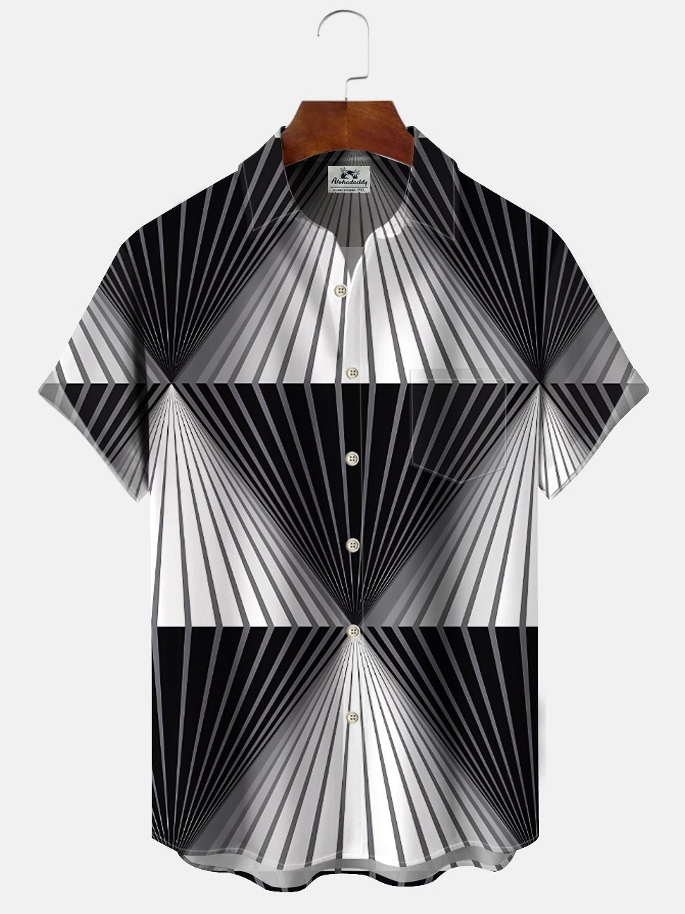 Alohadaddy Geometric Lines Button Pocket Casual Short Sleeve Shirt