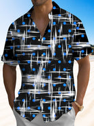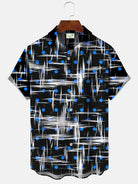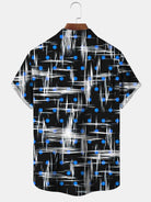 Alohadaddy Geometric Pattern 3D Digital Printing Buttons Pockets Casual Short Sleeve Shirt