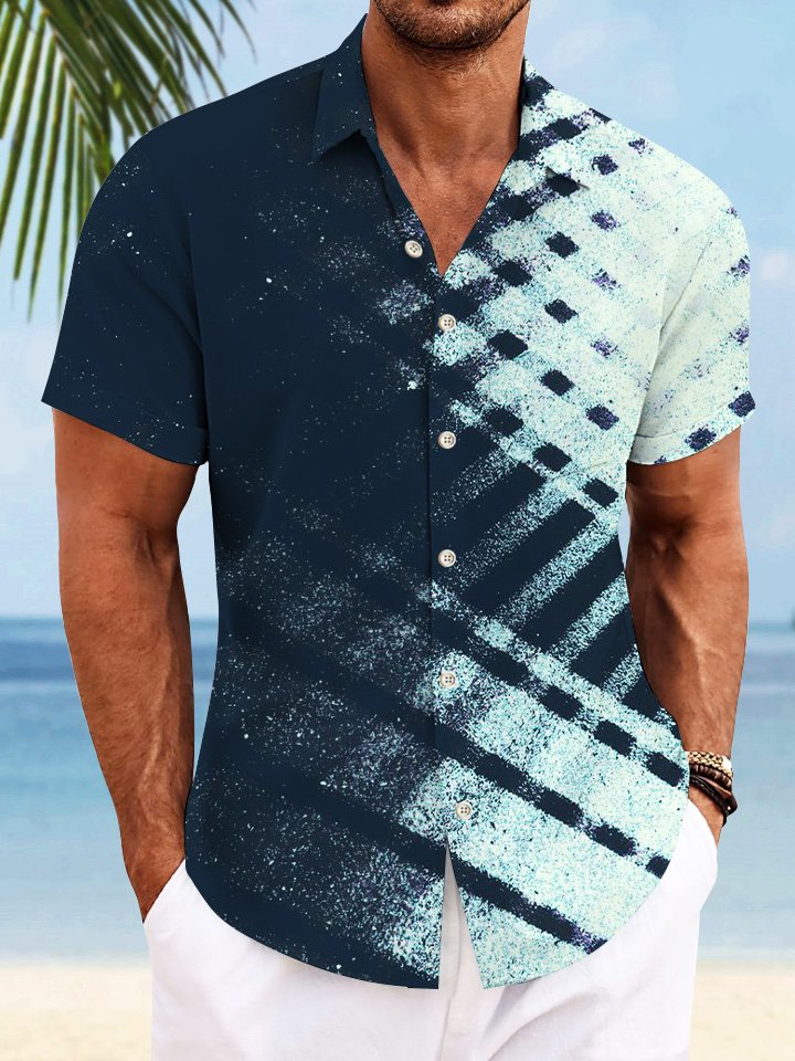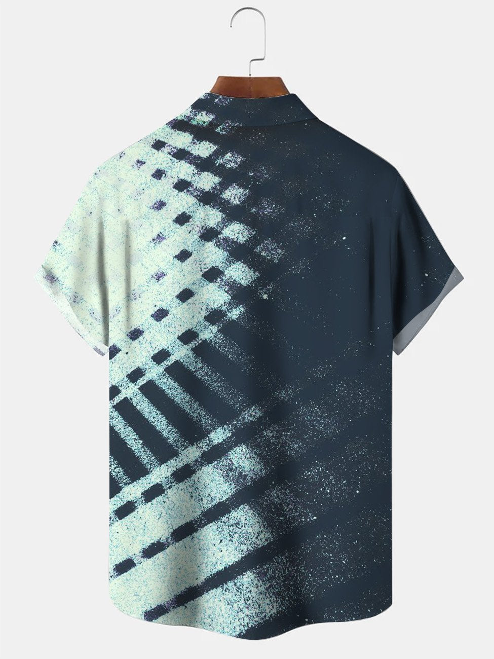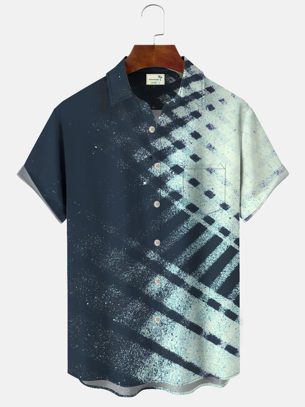 Alohadaddy Geometric Pattern Pixel Pocket Button Casual Short Sleeve Shirt