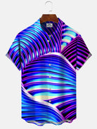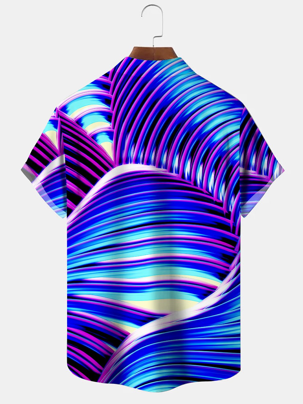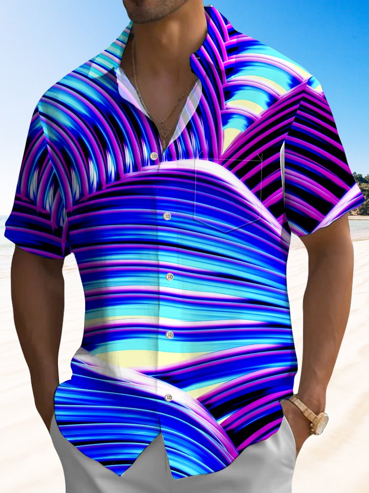 Alohadaddy Geometric Stripe Button Pocket Casual Short Sleeve Shirt