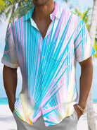 Alohadaddy Gradient Coconut Tree Button Pocket Casual Short Sleeve Shirt