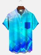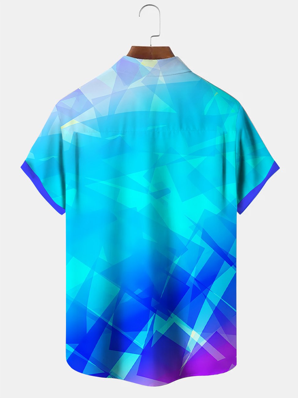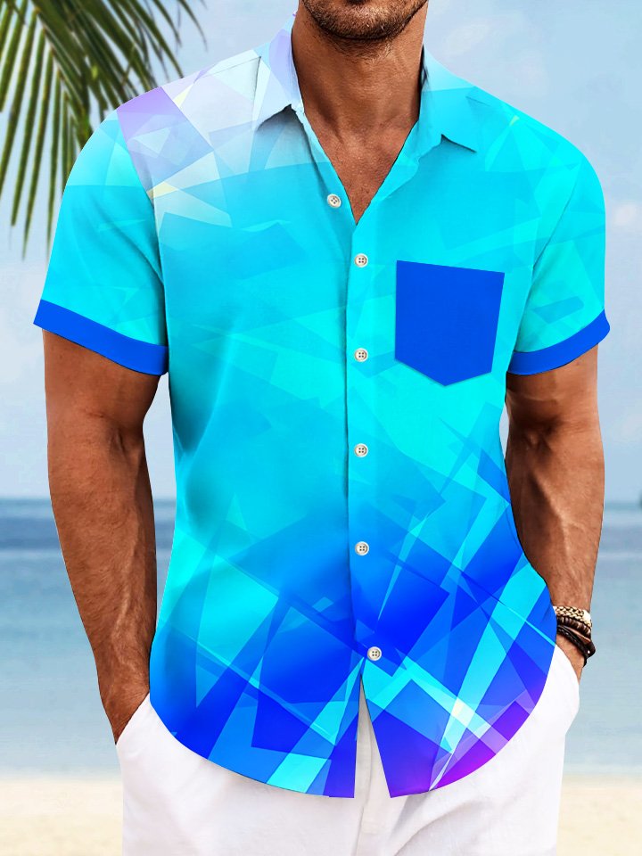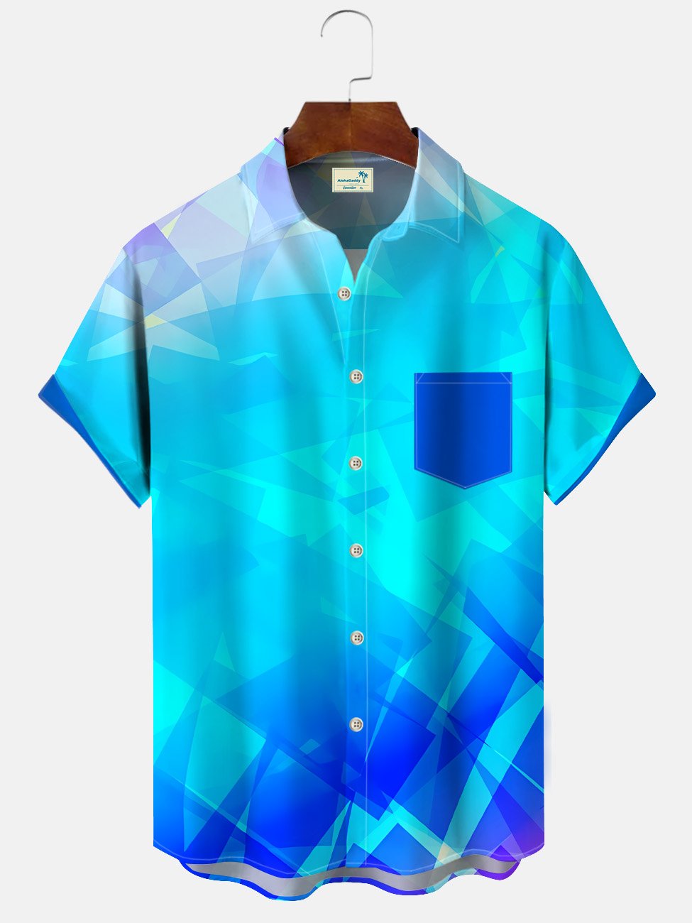 Alohadaddy Gradient Geometric Pattern Mens Button Pocket Casual Short Sleeve Shirt