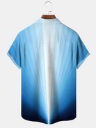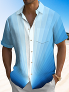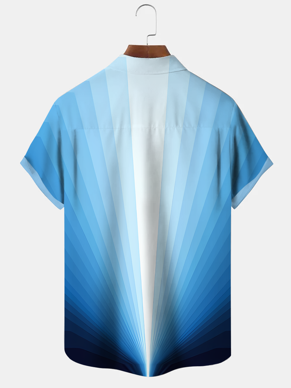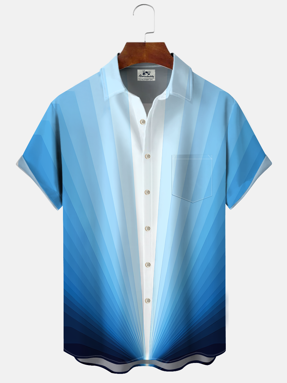Alohadaddy Gradient Geometric Stripes Button Pocket Casual Short Sleeve Shirt