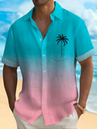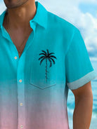 Alohadaddy Hawaiian Coconut Tree Gradient 3D Print Men's Button Pocket Short Sleeve Shirt