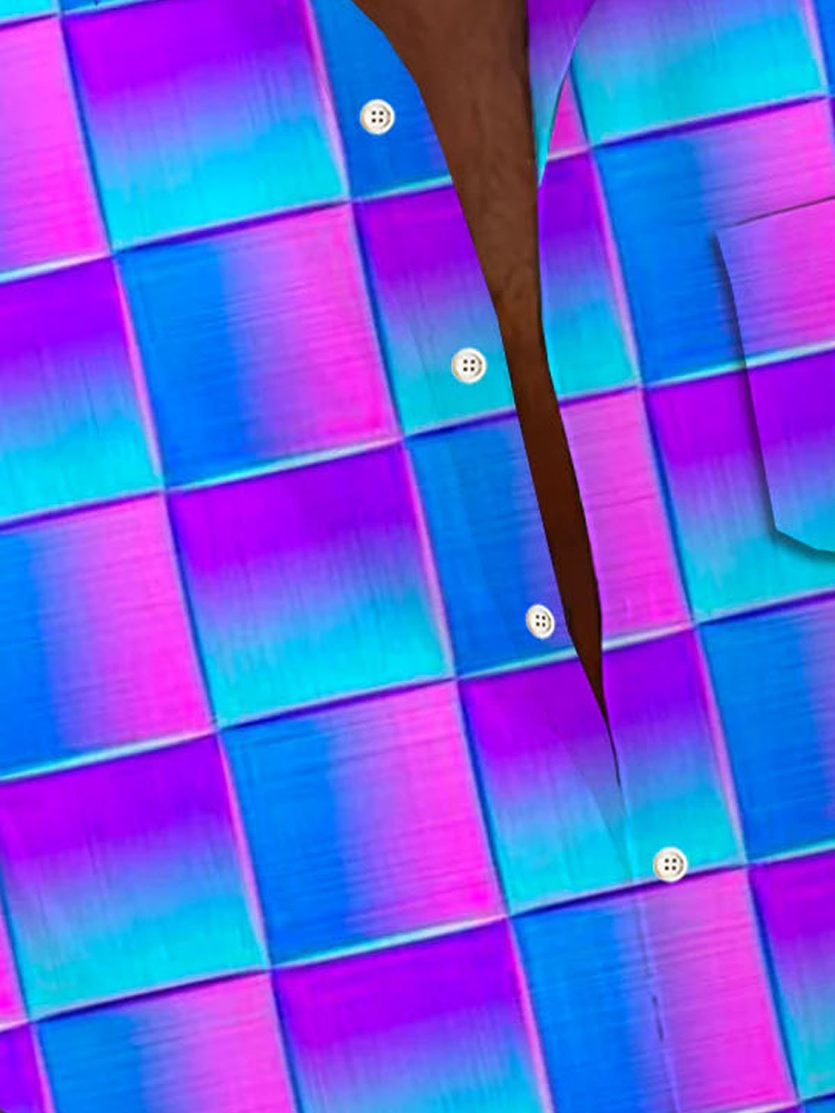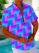 Alohadaddy Hawaiian Geometric Gradient 3D Print Men's Button Pocket Short Sleeve Shirt