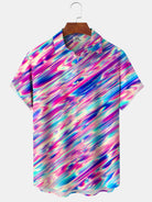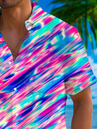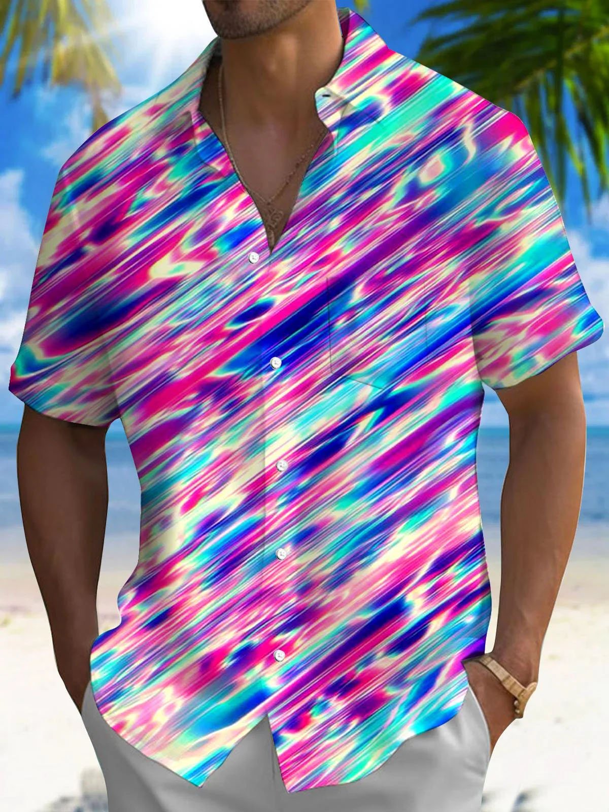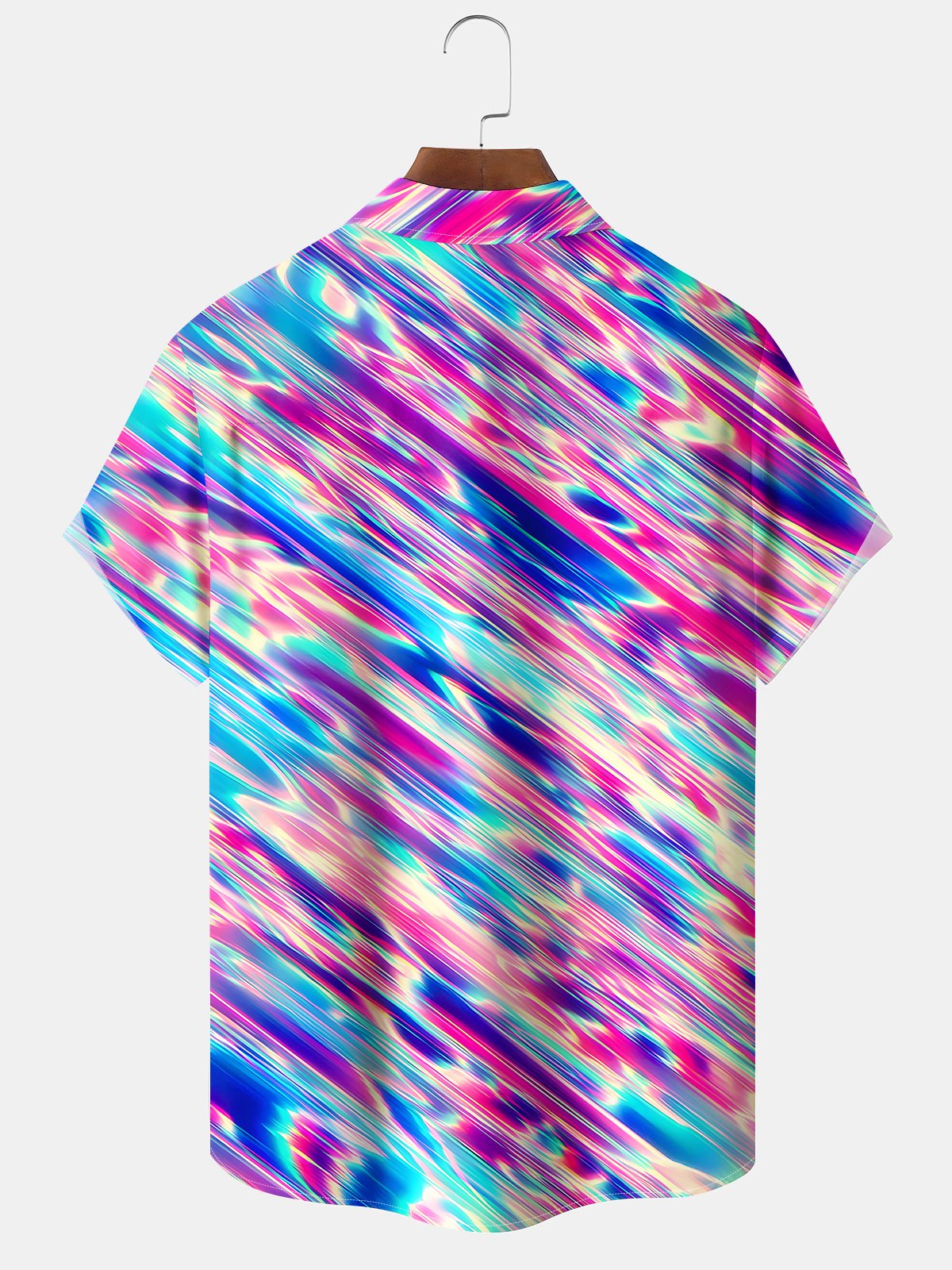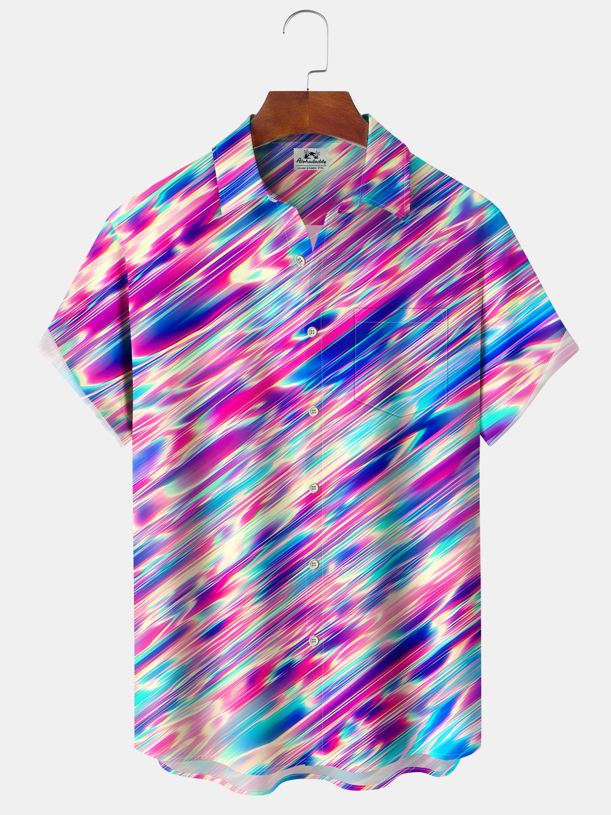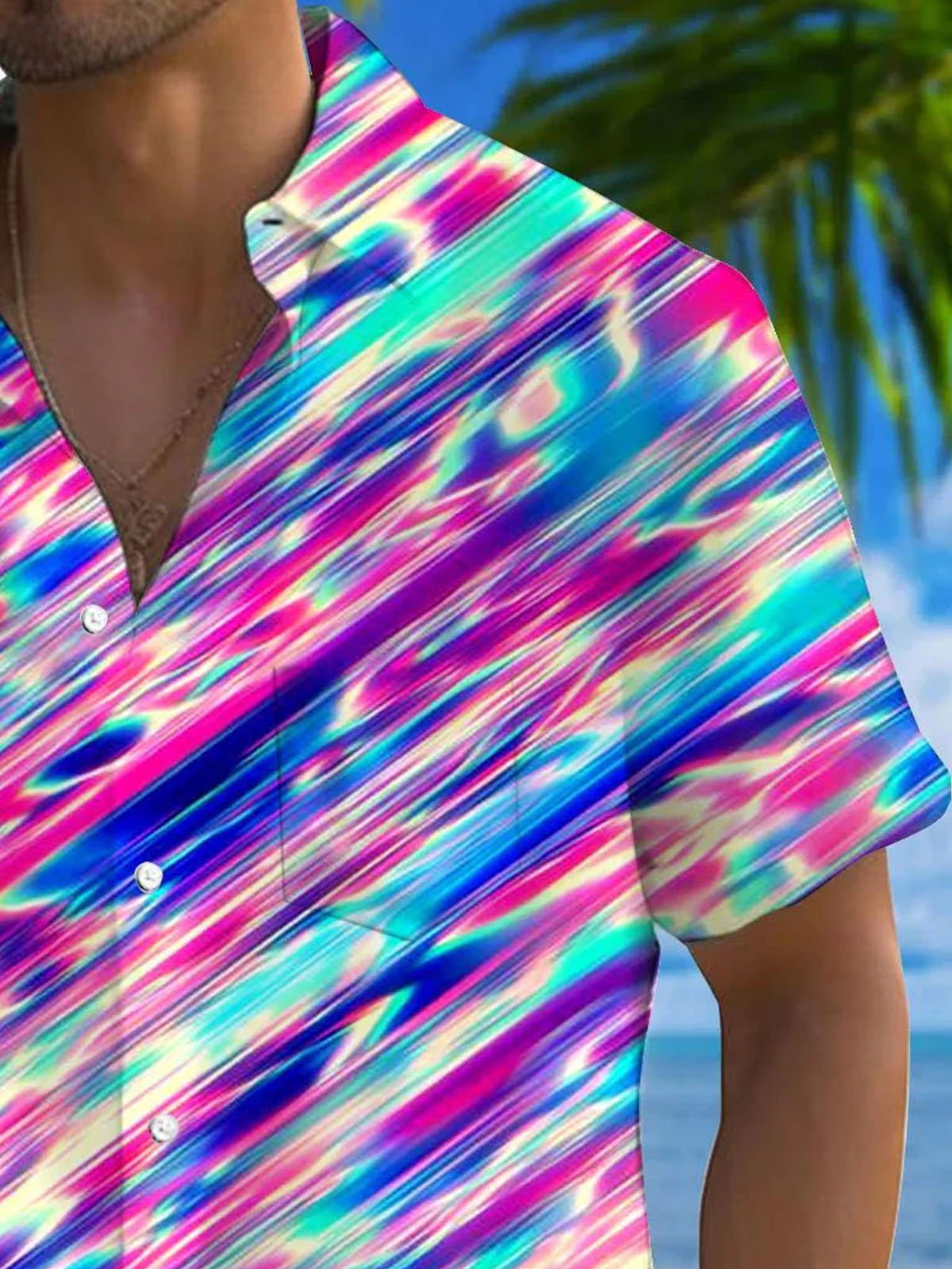 Alohadaddy Hawaiian Gradient Stripes 3D Digital Print Men's Button Pocket Short Sleeve Shirt Big & Tall