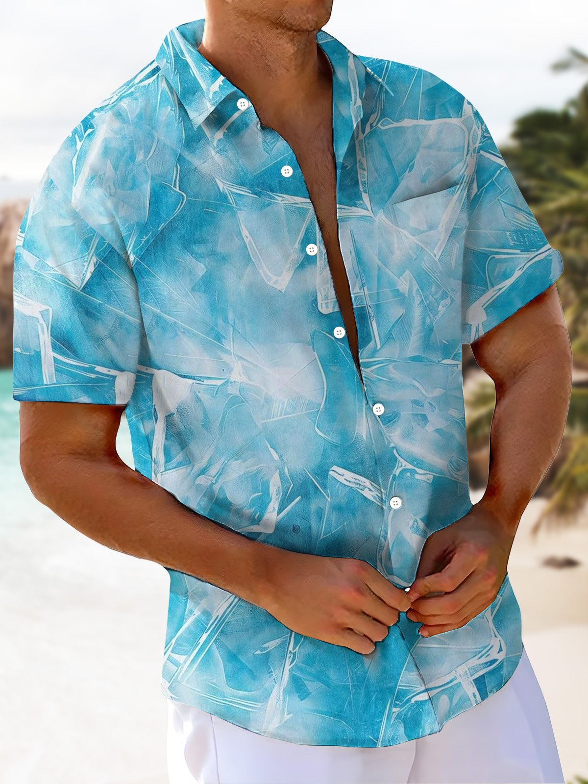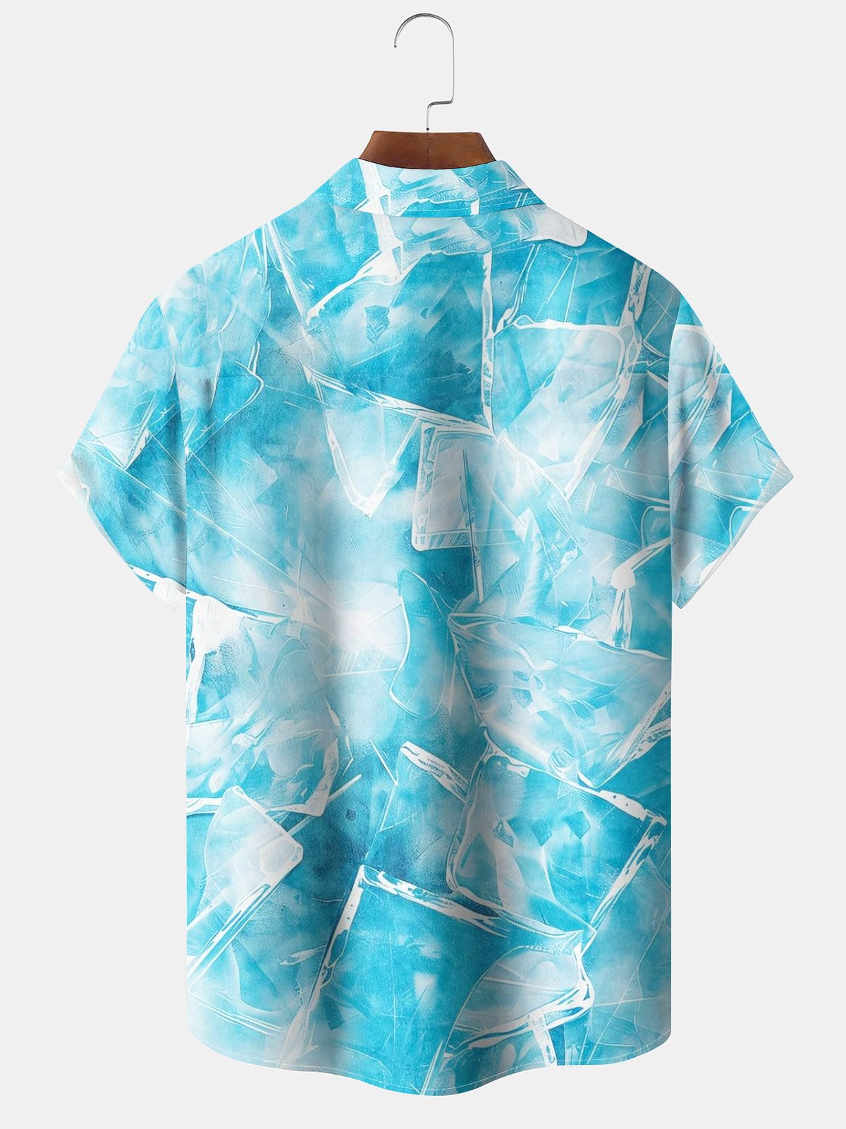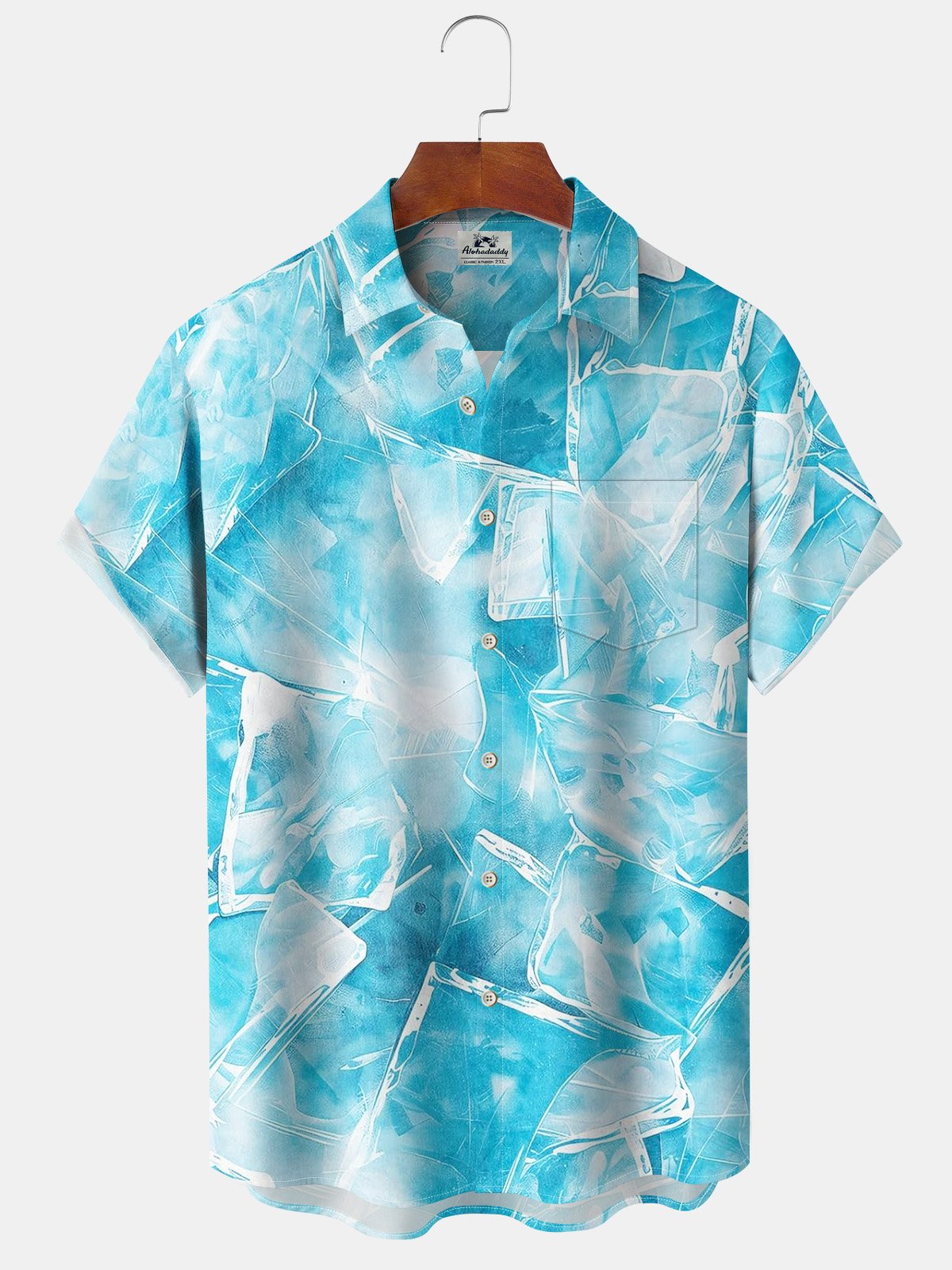 Alohadaddy Hawaiian Moisture Wicking Cooling Ice Cubes Print Art Chest Pocket Stretch Short Sleeve Shirt