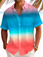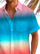 Alohadaddy Hawaiian Ombre 3D Print Men's Button Pocket Short Sleeve Shirt