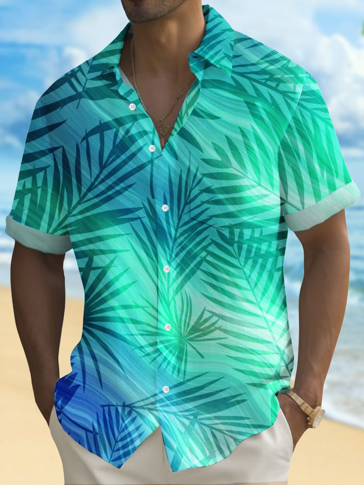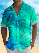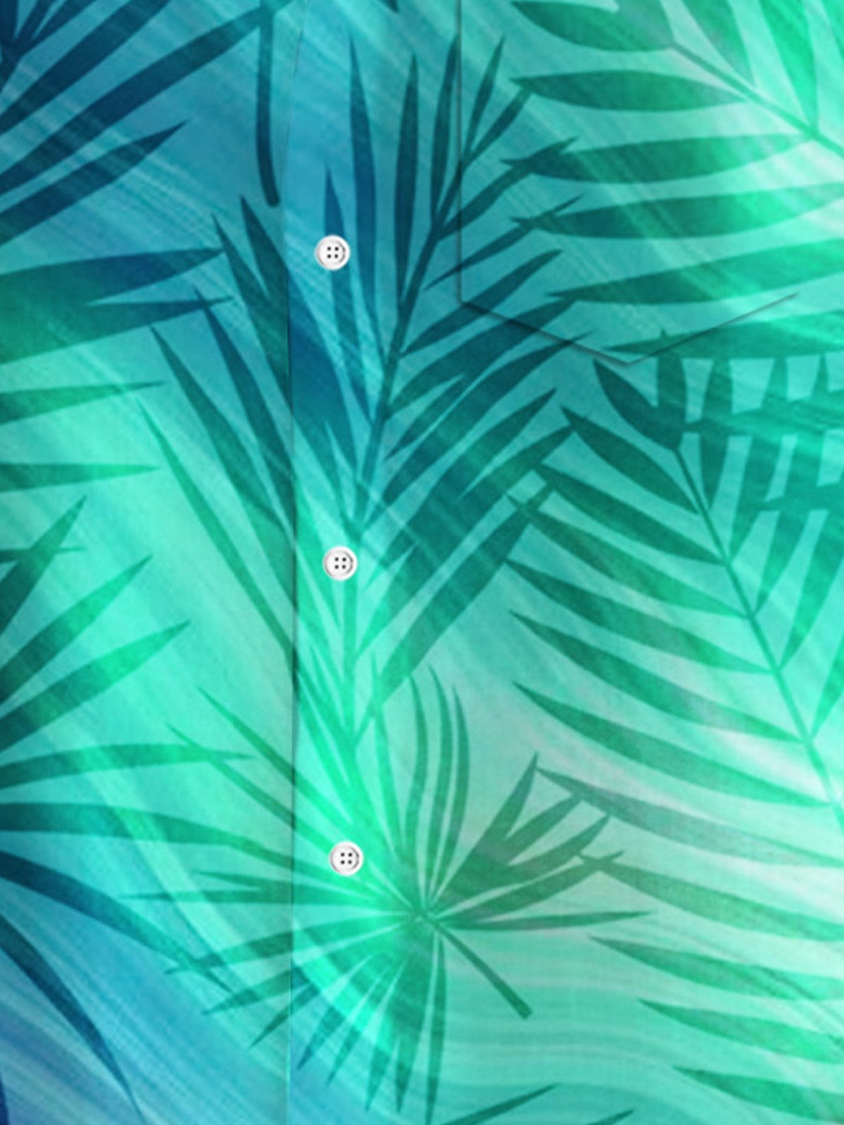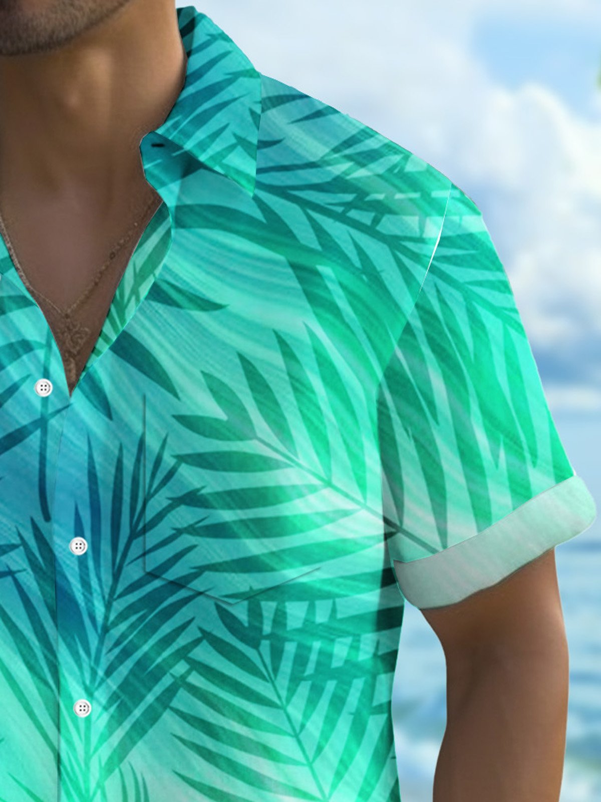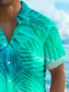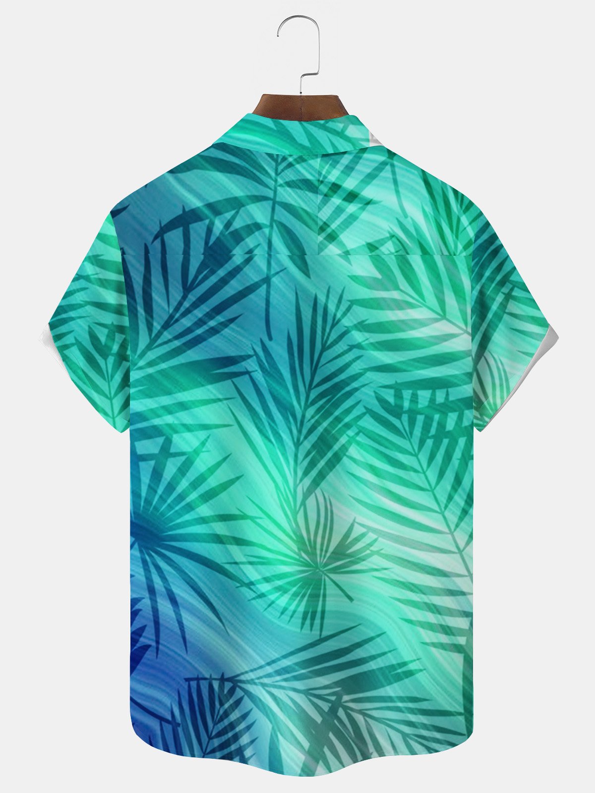 Alohadaddy Hawaiian Plant Leaves Palm Tree Gradient Print Men's Button Pocket Short Sleeve Shirt