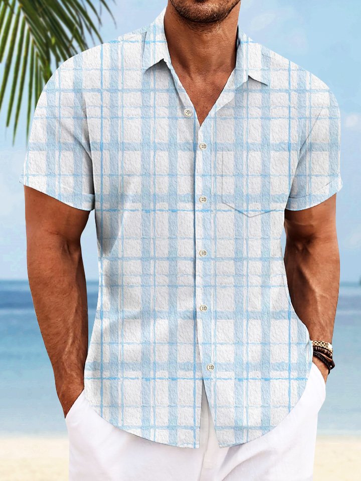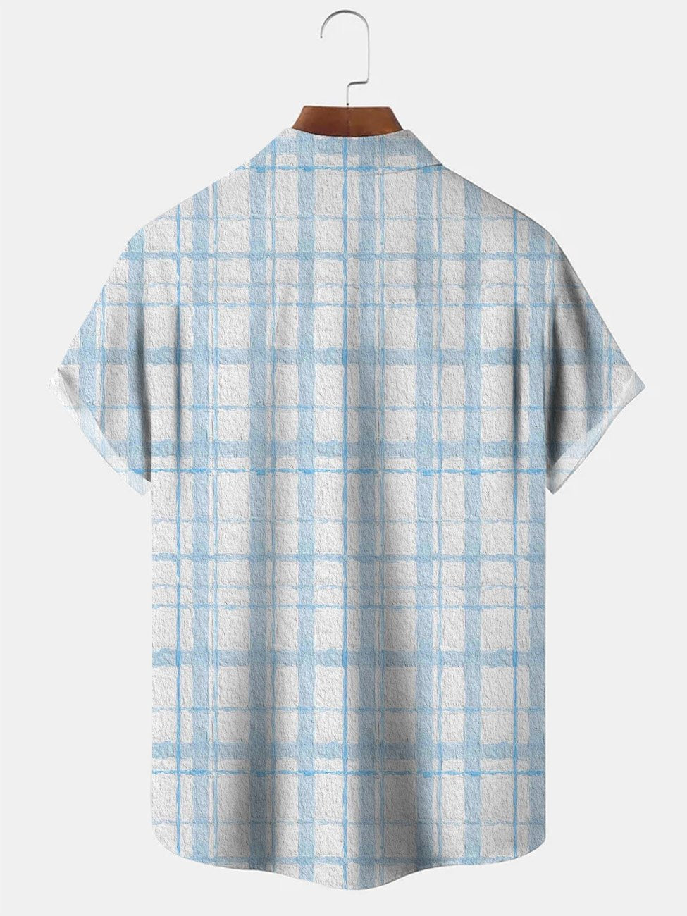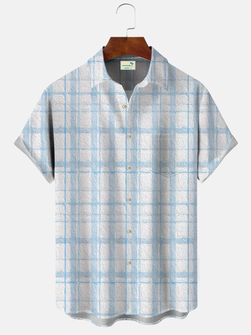 Alohadaddy Plaid Geometric Pattern Mens Pocket Button Casual Short Sleeve Shirt