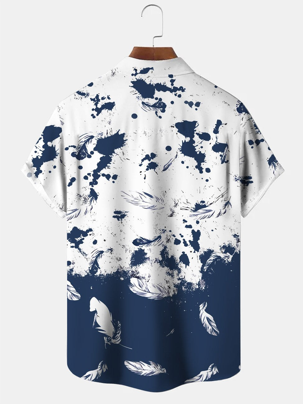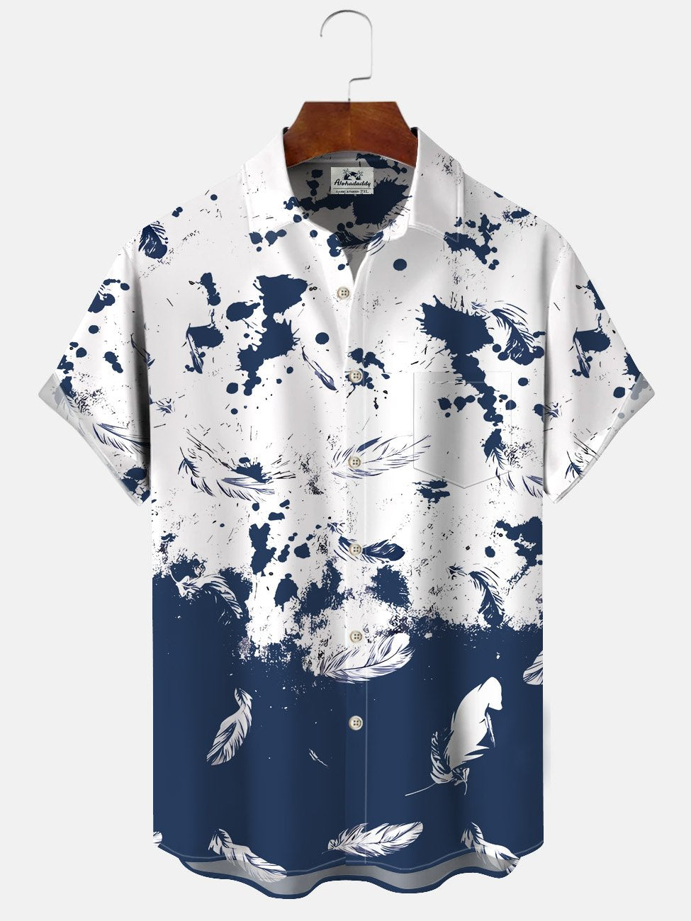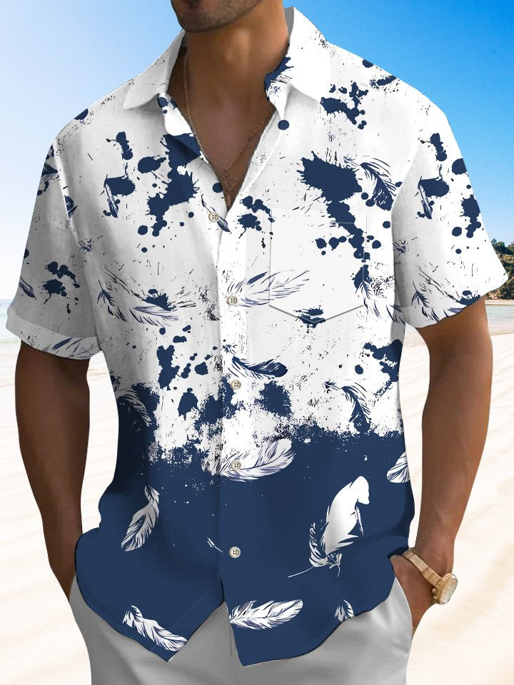 Alohadaddy Plant Leaves Gradient Button Pocket Casual Short Sleeve Shirt