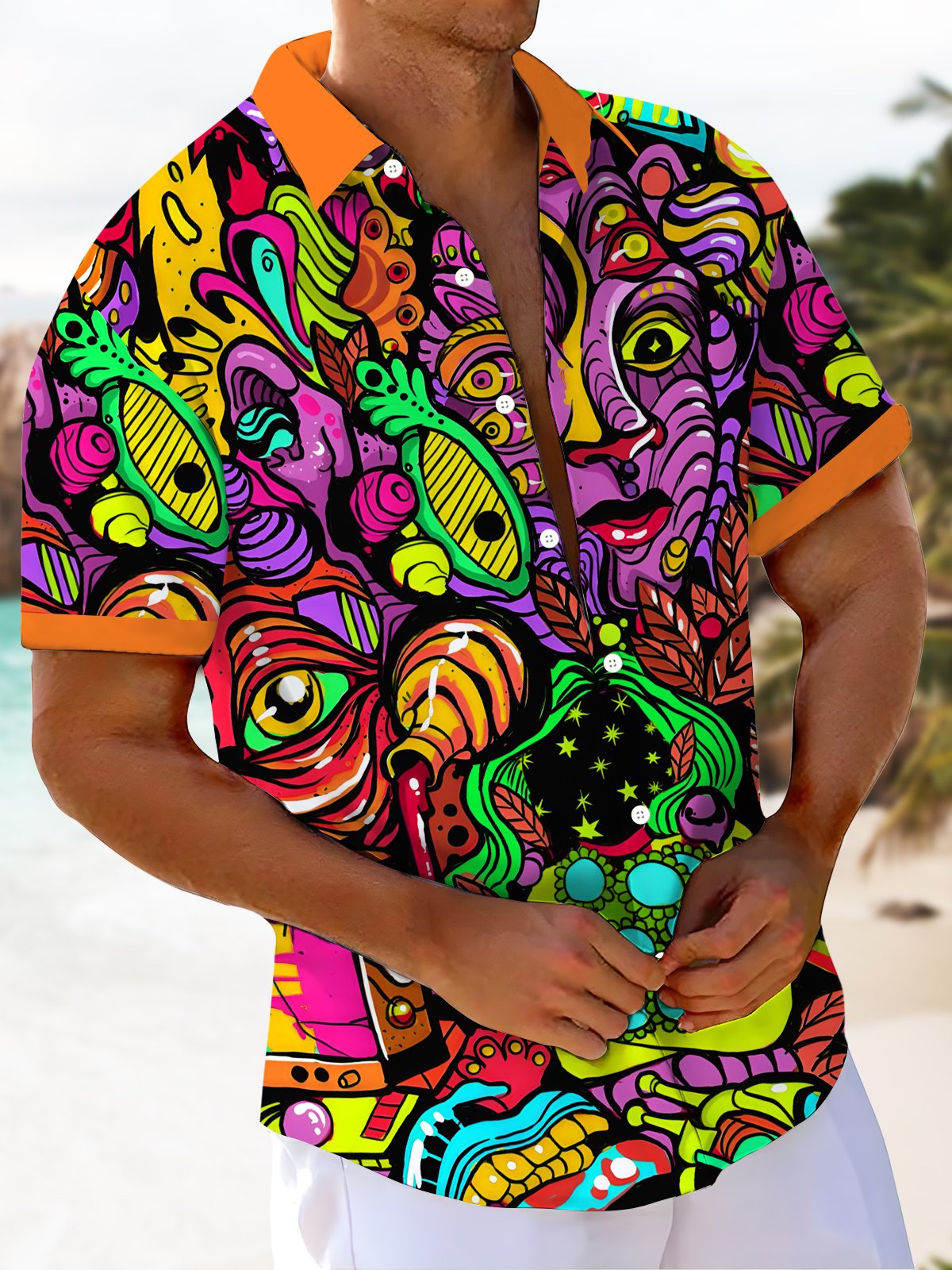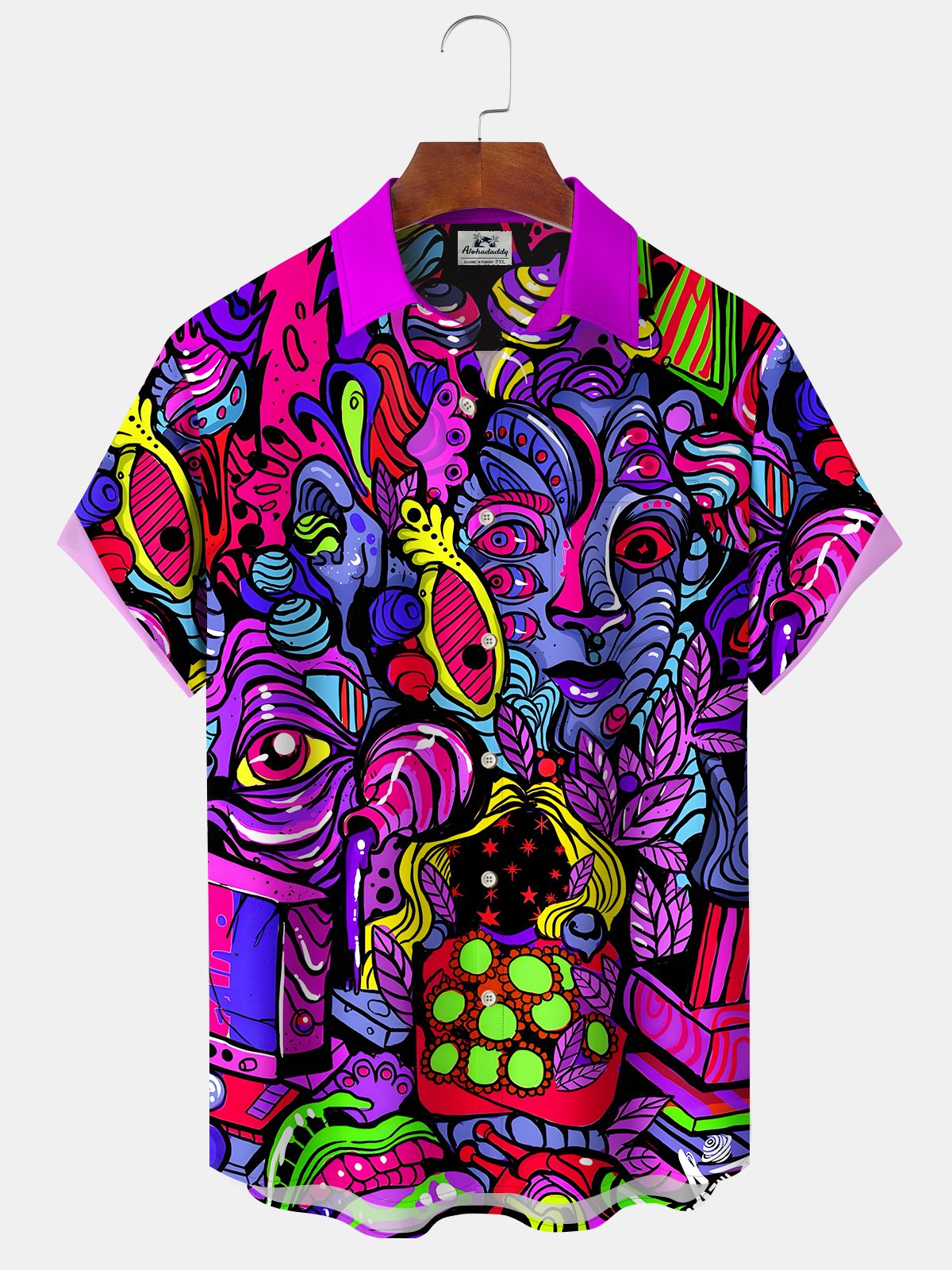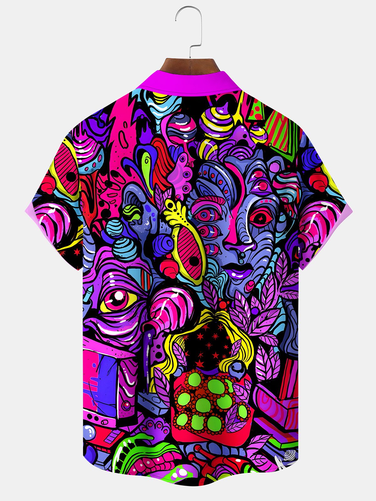 Alohadaddy Retro 70s Psychedelic Abstract Music Pocket Shirt