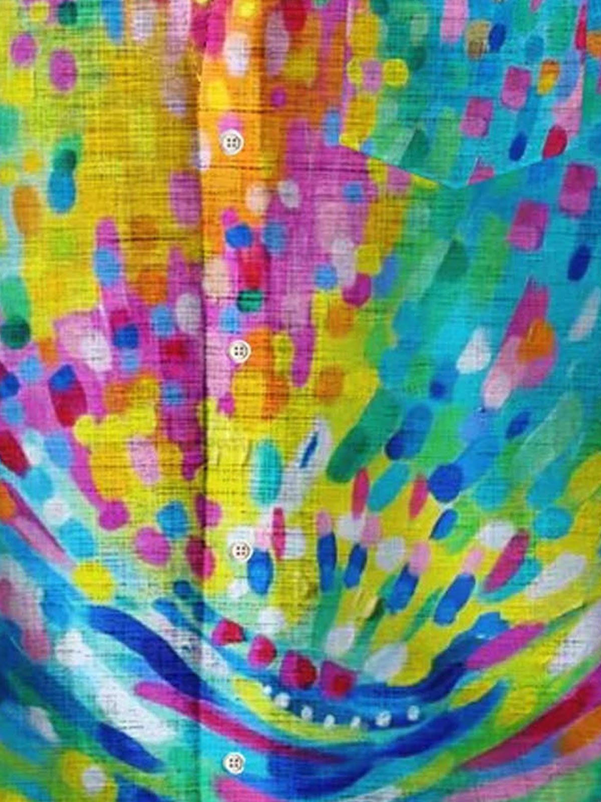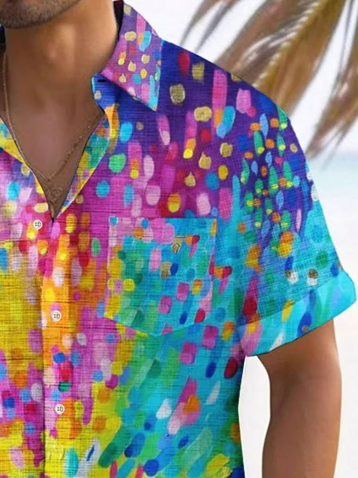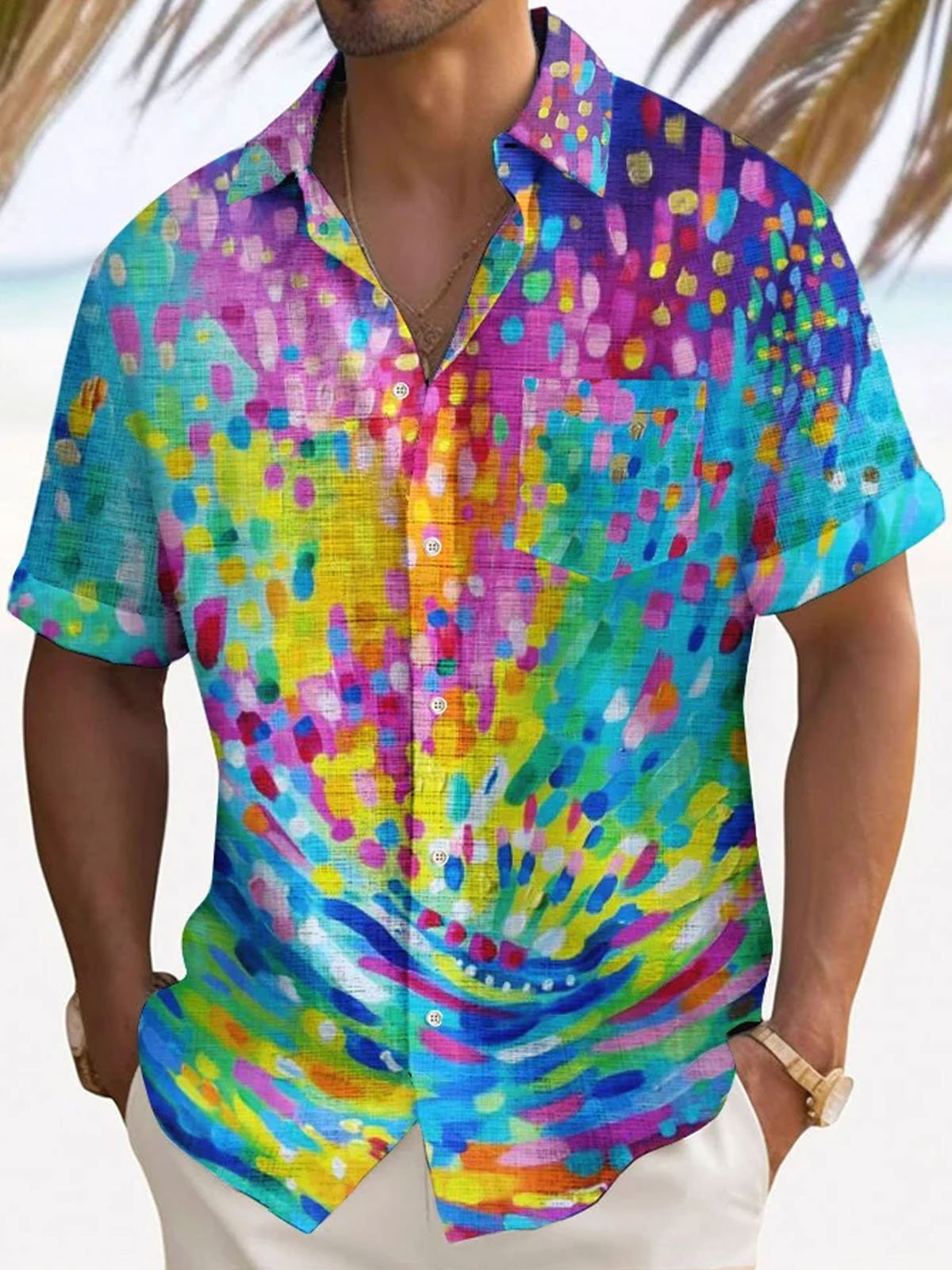 Alohadaddy Retro Art 3D Print Men's Button Pocket Short Sleeve Shirt