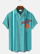 Alohadaddy Summer Stripes Music Sunset Men's 50S Bowling Commuter Button Pocket Short Sleeve Shirt
