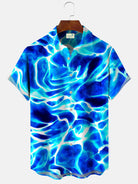 Alohadaddy Summer Water Wave Pocket Button Casual Men's Polyester Short Sleeve Shirt