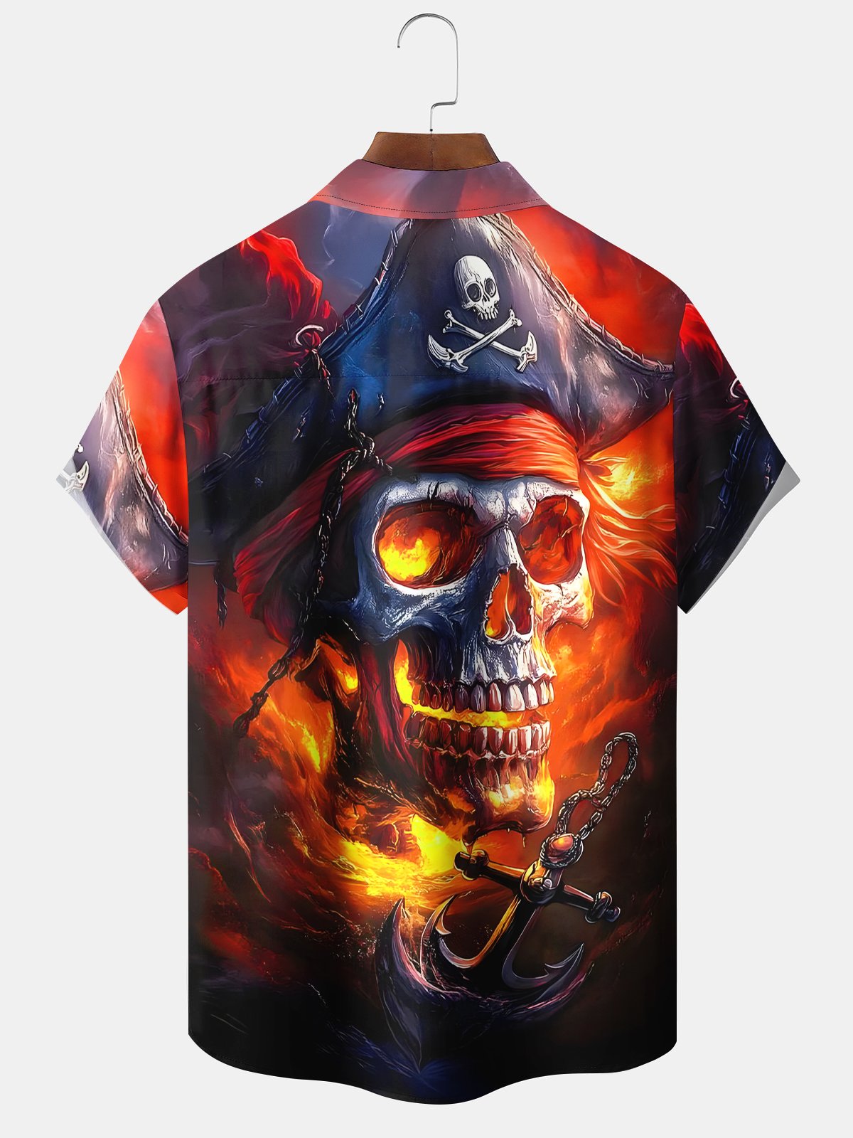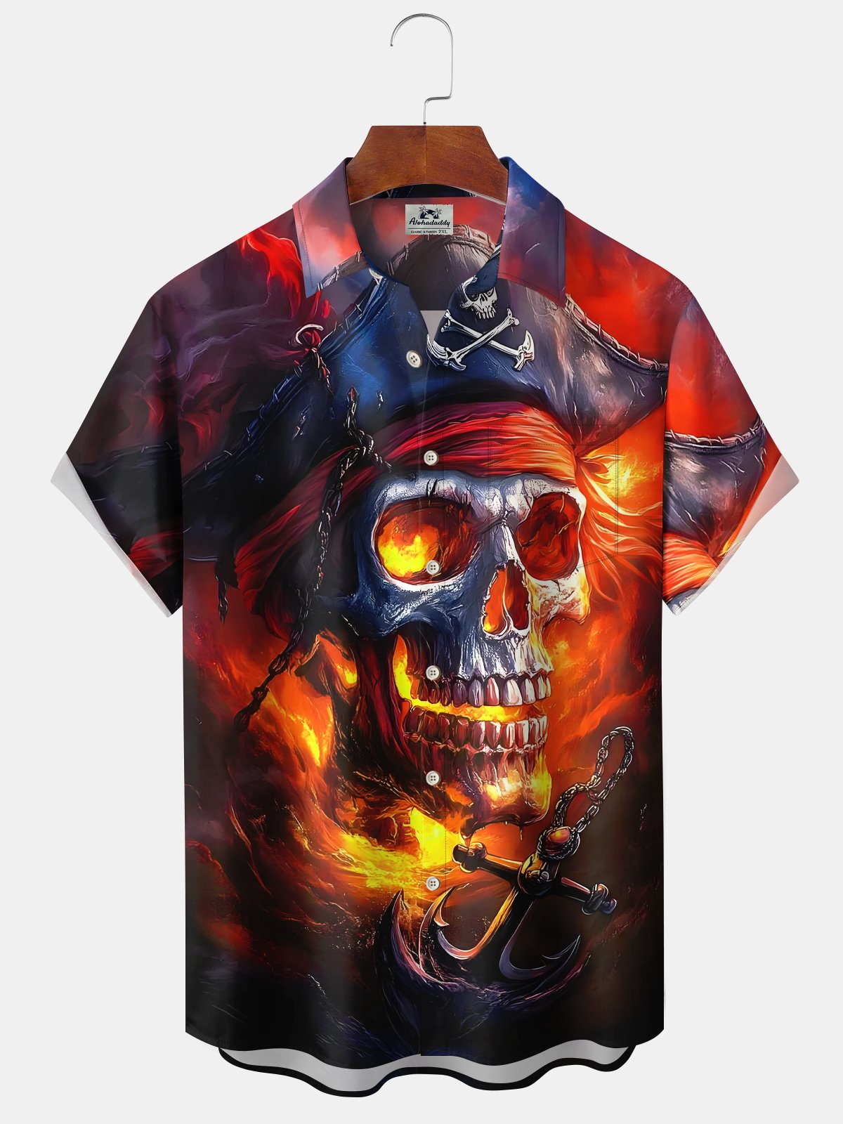 Alohadaddy® Halloween Vintage Skull Pirate Stretch Pocket Shirt