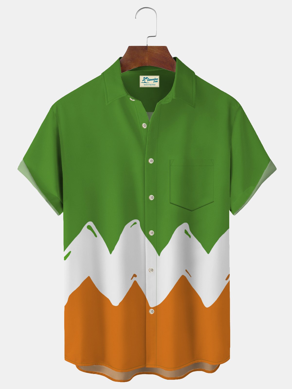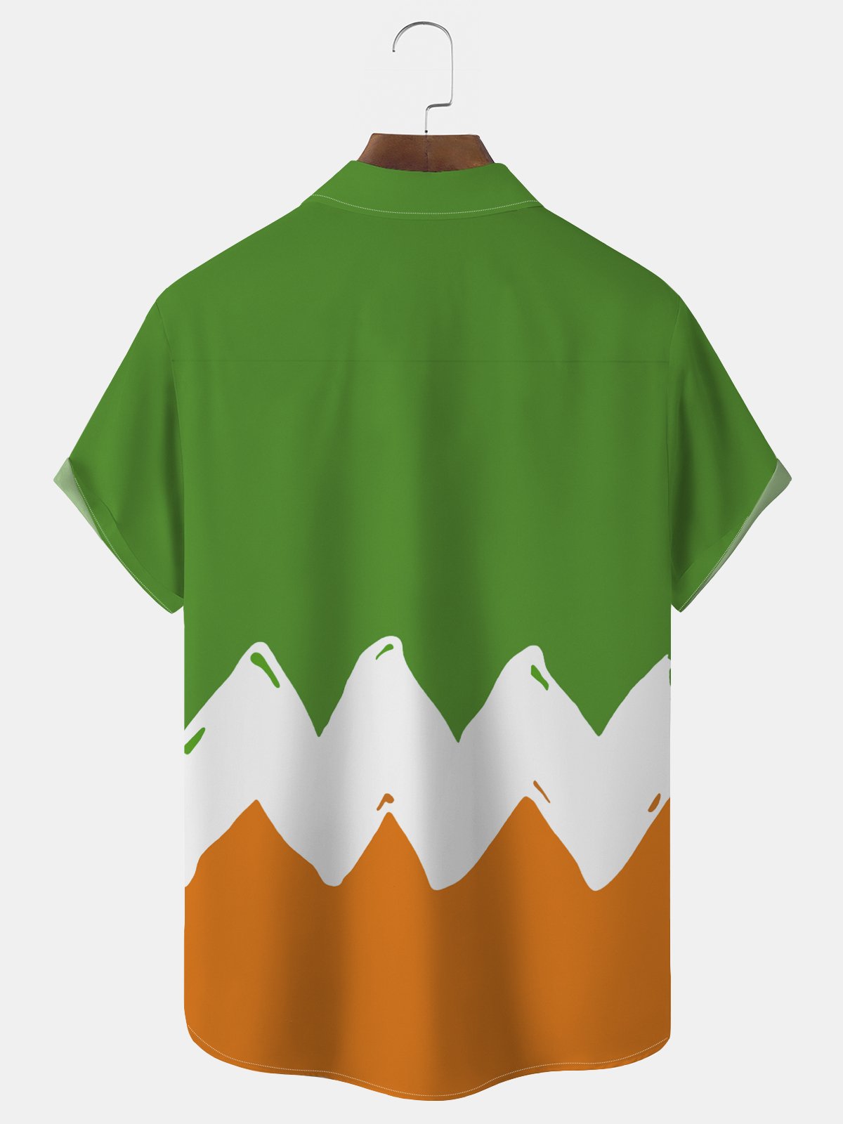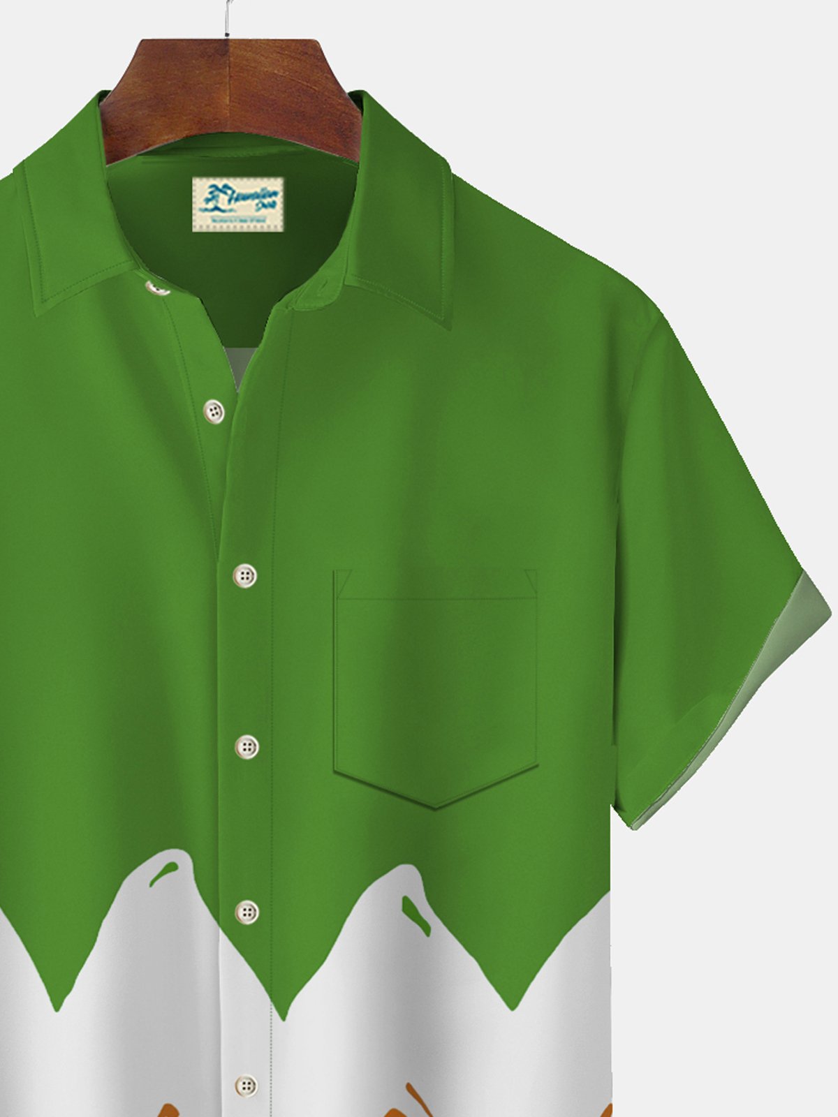 Alohadaddy St. Patrick's Holiday Men's Vintage Shirt Fun Cartoon Pocket Camp Shirt Big Tall