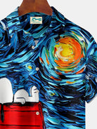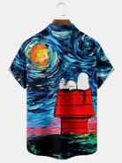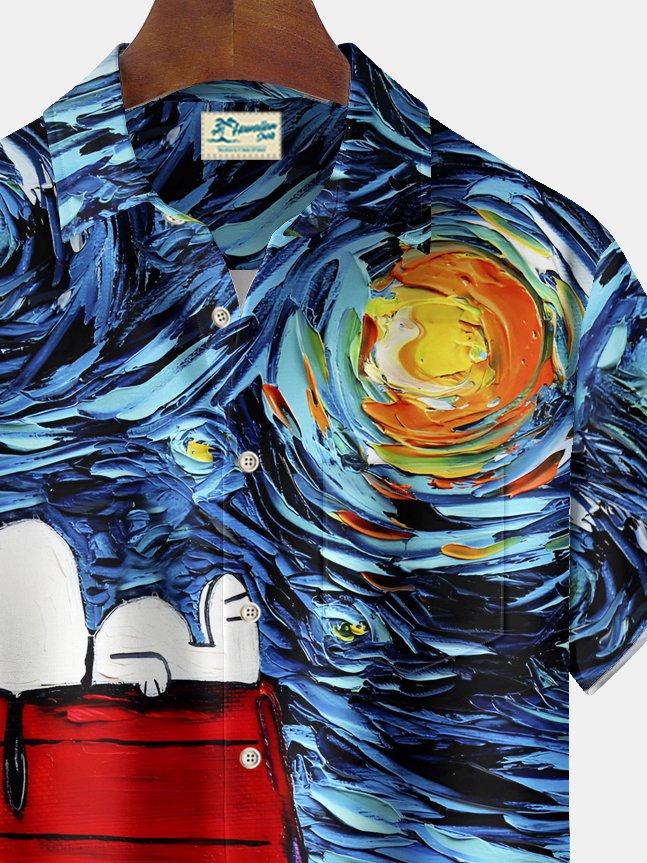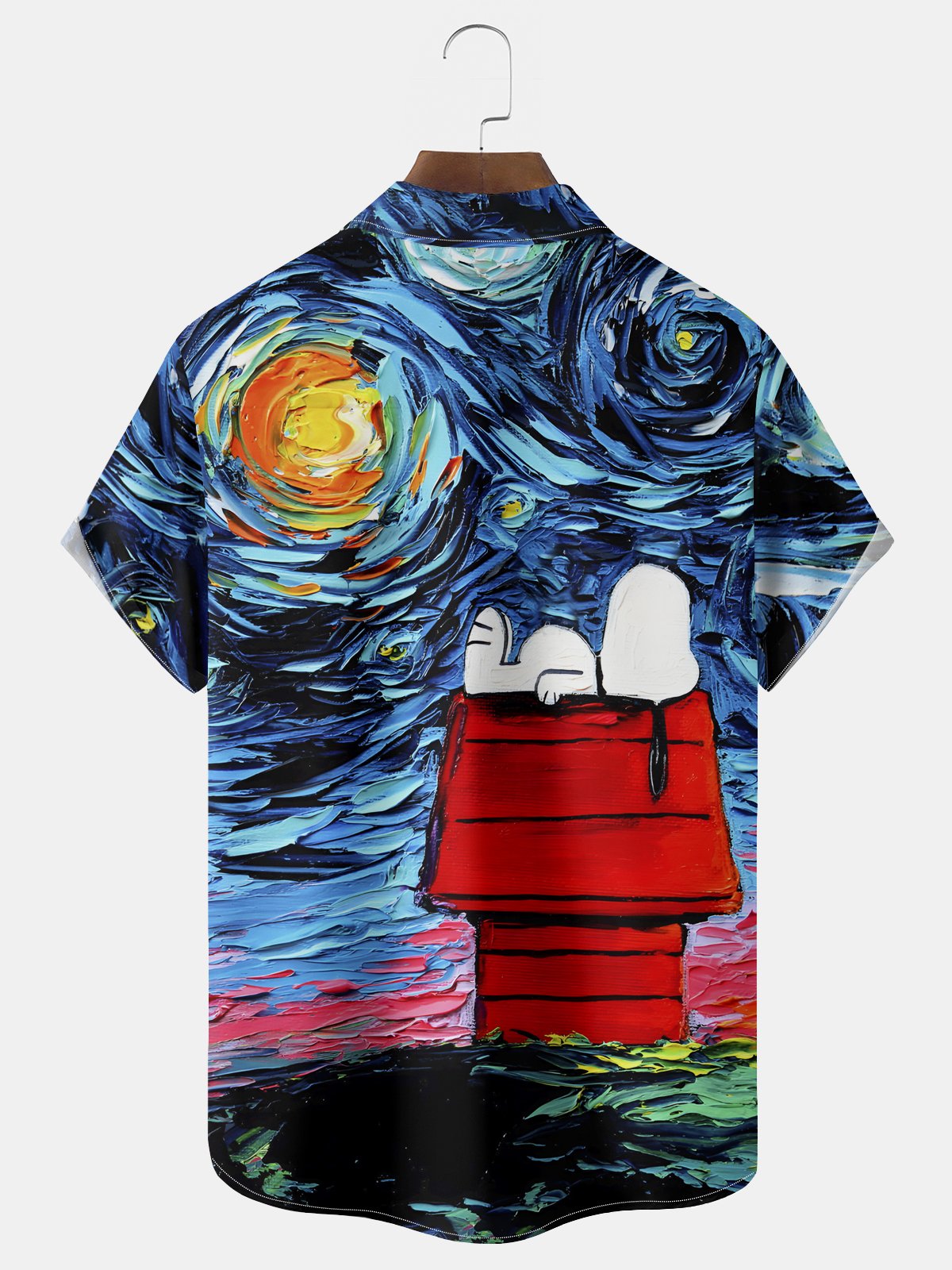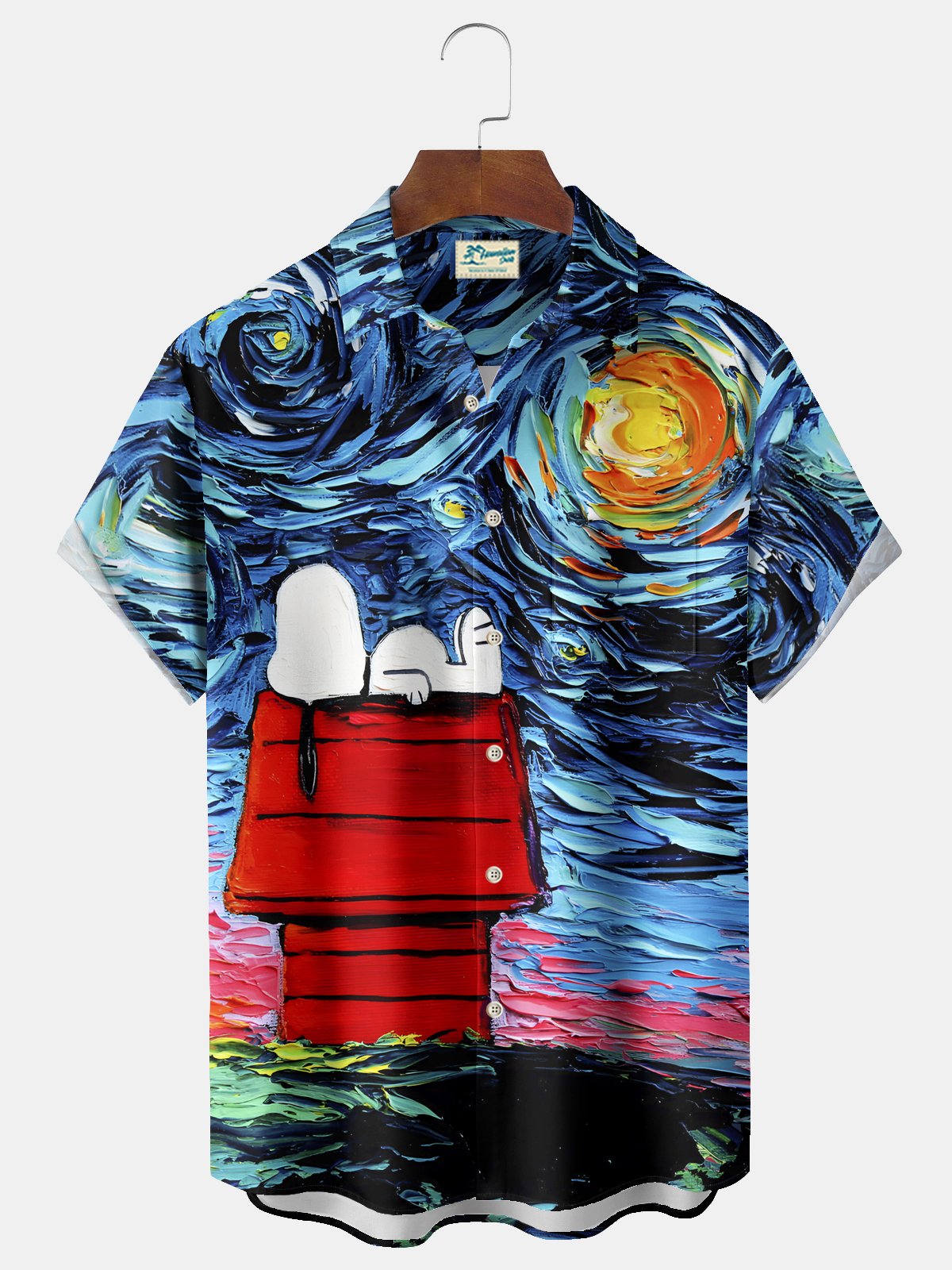 Alohadaddy Vintage Art Cartoon Print Chest Pocket Stretch Shirt Big Tall