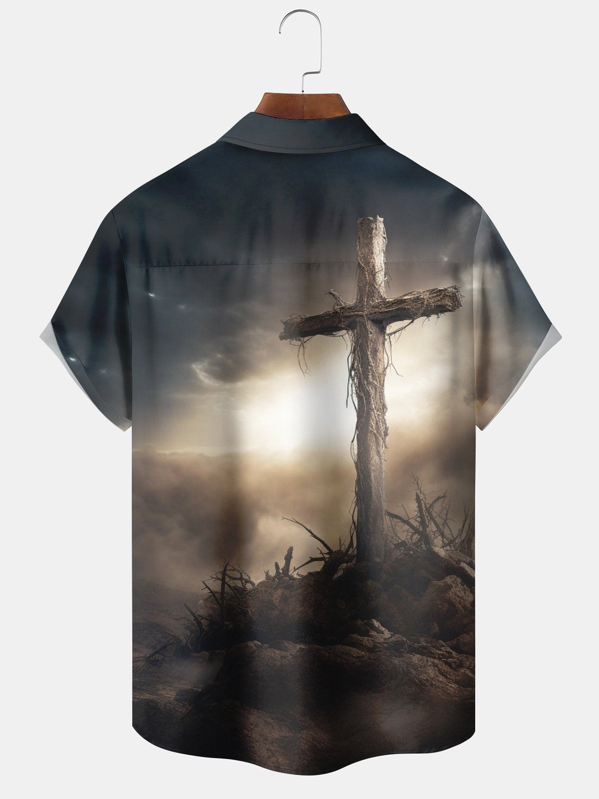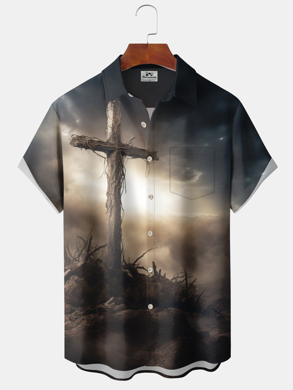 Alohadaddy Vintage Holiday Mens Easter Jesus Cross Stretch Pocket Shirt