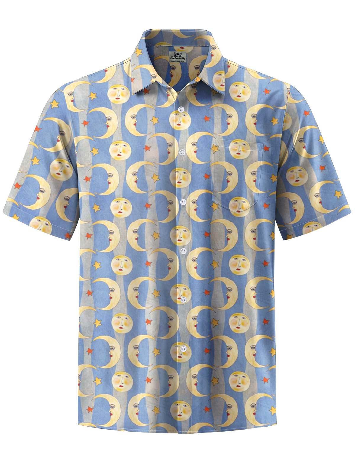 Alohadaddy® Casual Stripe Moon Print Pocket Men's Stretch Short Sleeve Shirt Big & Tall