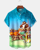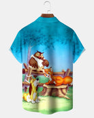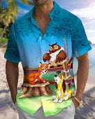 Alohadaddy® Retro Cartoon Animal Art Pocket Elastic Button Men's Short Sleeve Shirt Big & Tall