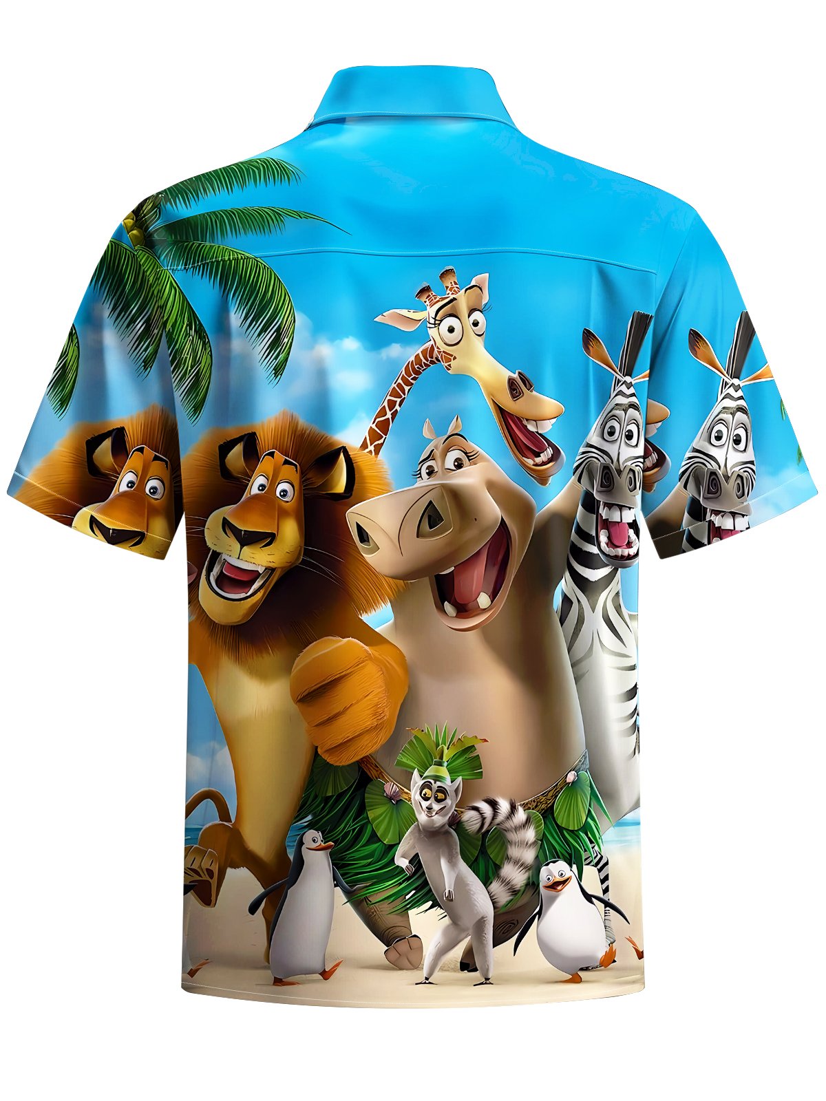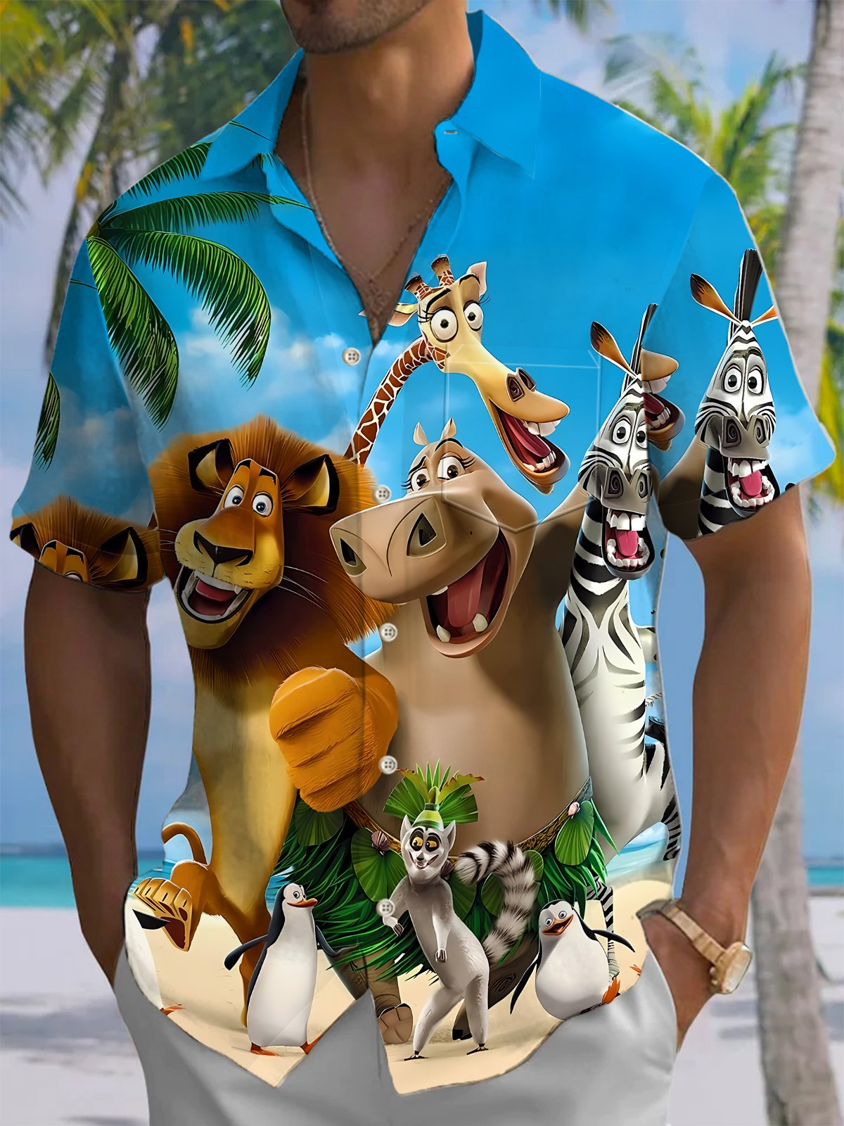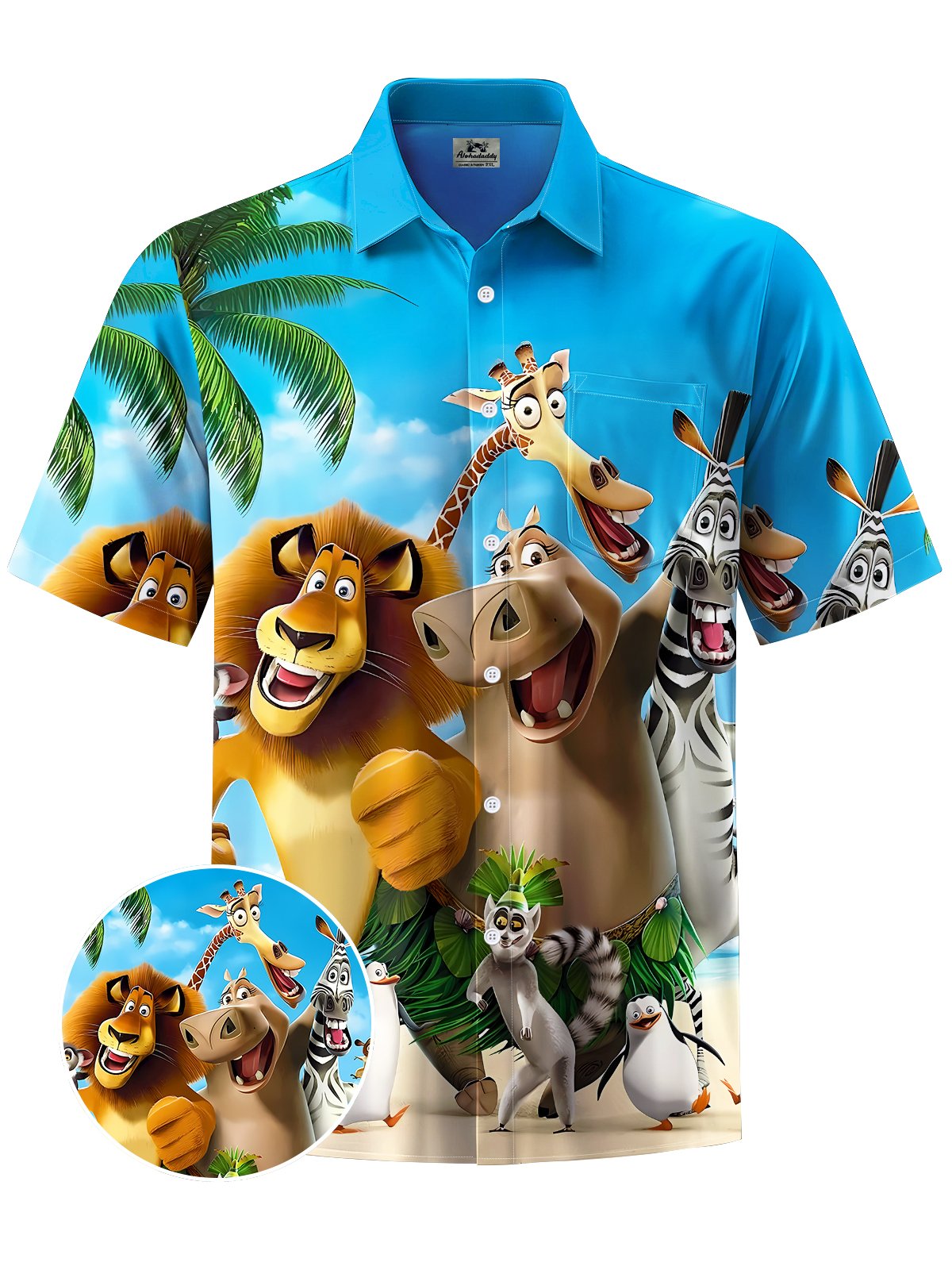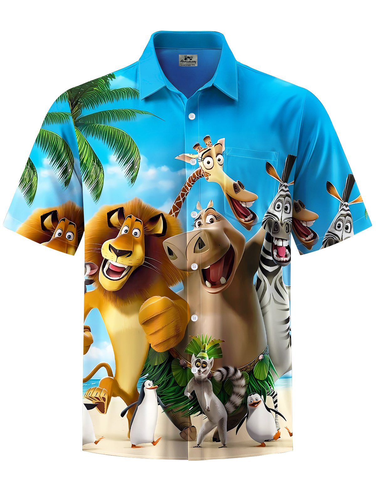 Alohadaddy® Casual Cartoon Art Print Chest Pocket Men's Short Sleeve Shirt Big & Tall