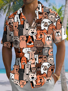 Alohadaddy® Casual Funny Dog Print Chest Pocket Men's Short Sleeve Shirt Big & Tall
