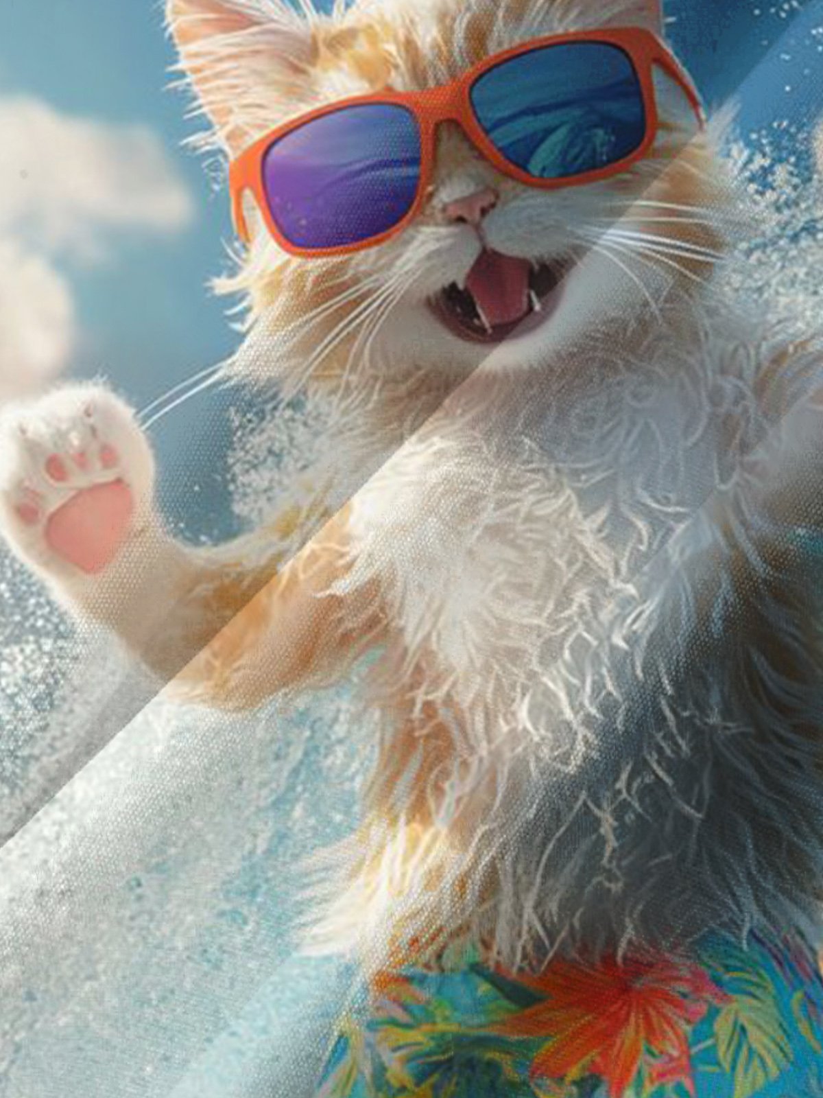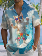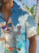 Alohadaddy® Hawaiian Surfing Fun Cat Art Print Chest Pocket Men's Short Sleeve Shirt Big & Tall
