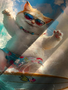 Alohadaddy Casual Surf Cat Art Print Moisture Wicking Chest Pocket Hawaiian Short Sleeve Shirt