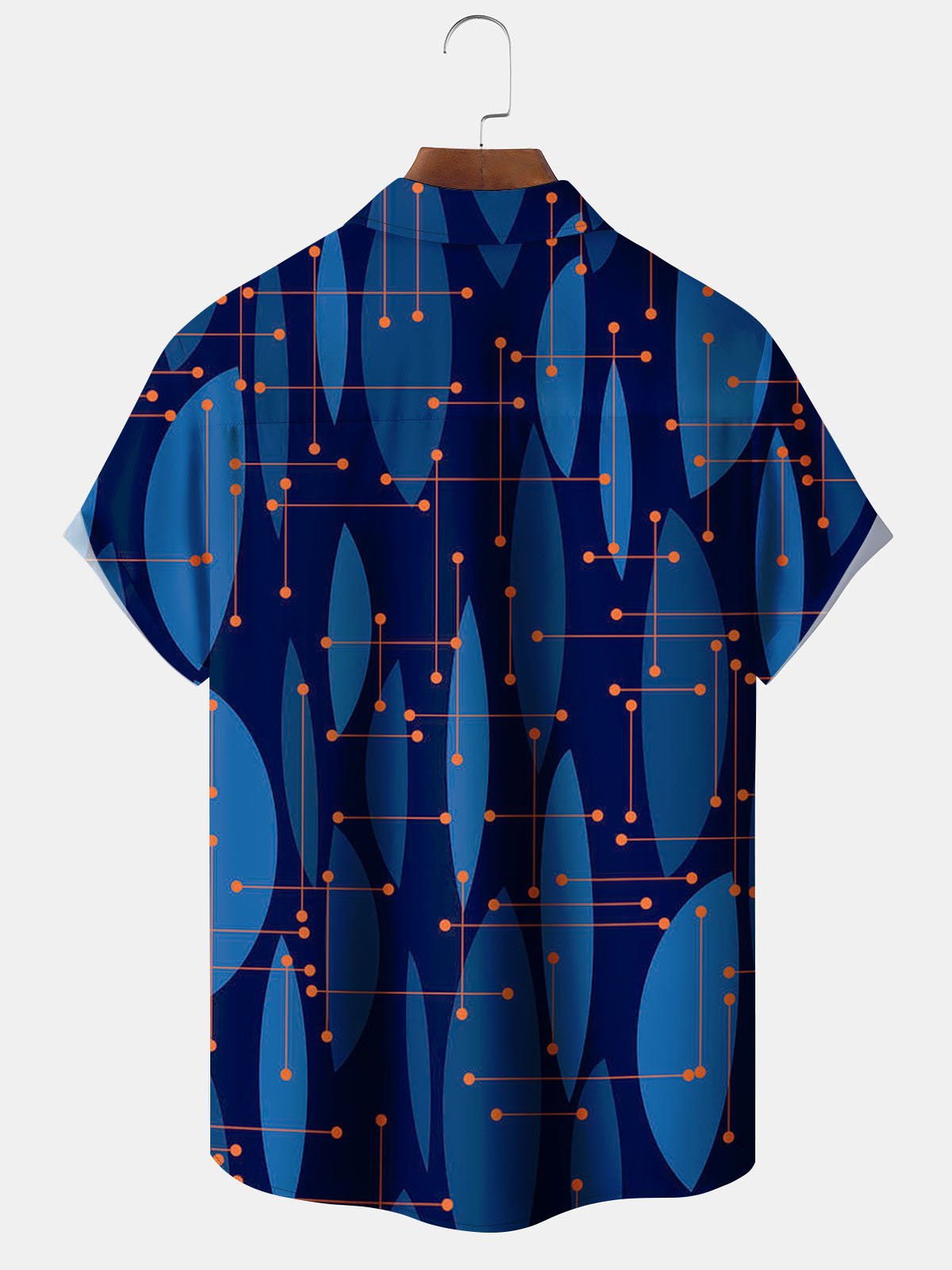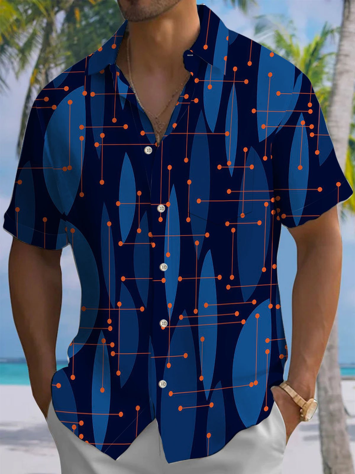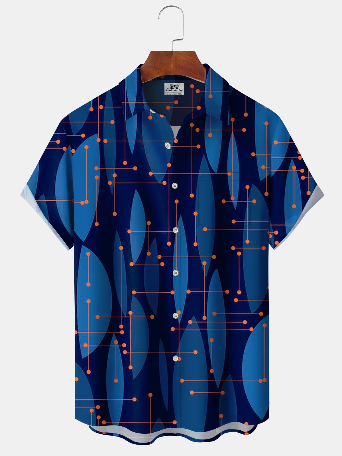 Alohadaddy® Men's Casual Geometric Print Pocket Stretch Button Short Sleeve Shirt Big & Tall