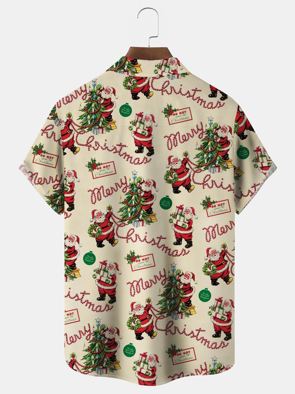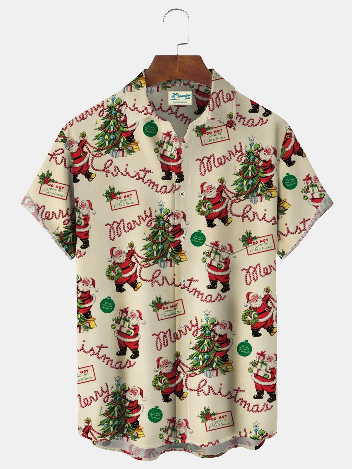 Alohadaddy Christmas Holiday Khaki Men's Shirts 50's Vintage Santa Cartoon Stretch Easy Care Pocket Shirts BIg Tall